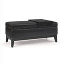 - Storage & serving: Lift-open lid with child safety hinge reveals a large interior storage compartment; includes a removable serving tray for drinks or décor.