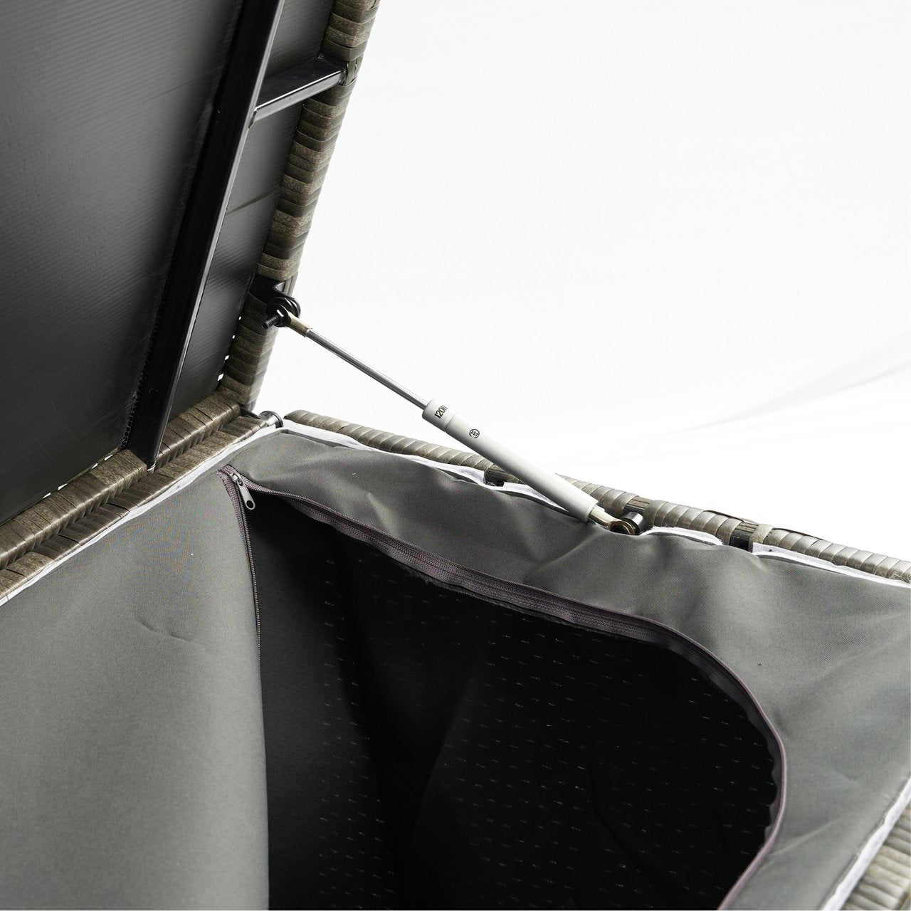 Keep your outdoor living spaces tidy and stylish with this durable 113‑gallon storage box. Designed for both indoor and outdoor use, it blends a timeless grey wicker look with practical features that protect cushions, toys, towels and pool accessories from the elements while offering easy access and organization.