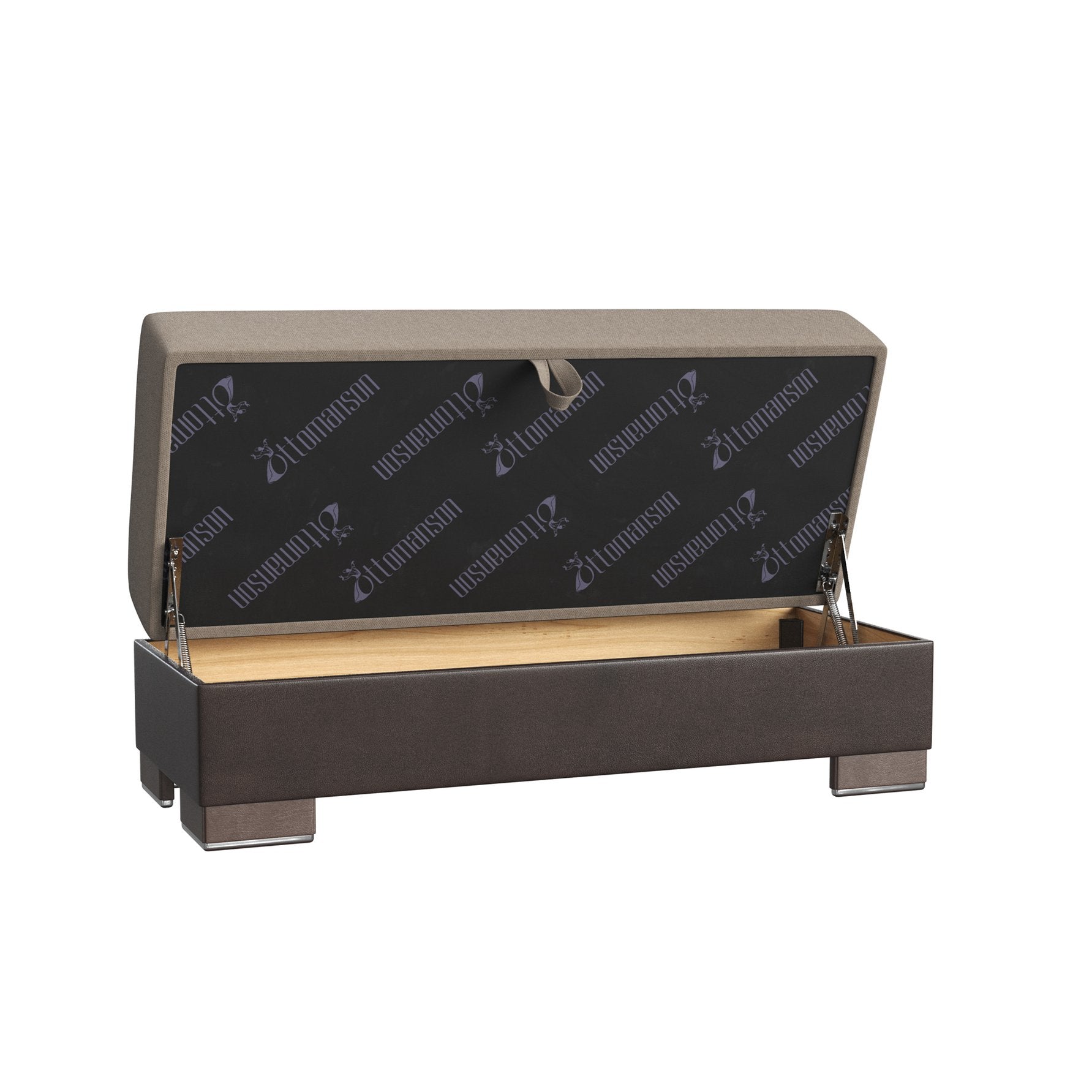 - QUALITY CRAFTED: Quality crafted in Turkey with only the finest materials. This Ottoman is manufactured with quality PU Leather with Chenille fabric seating cushions. Accompanied by four sturdy legs that help the Ottoman hold a WEIGHT CAPACITY OF 200 LBS.