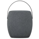 - Features a space-conscious round shape with a wood handle detail that is great for moving the footstool