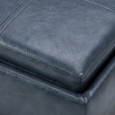 Add a touch of contemporary functionality to your living space with this versatile cube ottoman. Upholstered in durable denim-blue vegan faux leather and finished with top-stitching detail, it serves as an extra seat, a compact side table with a flip-over tray, and a discreet storage compartment—ideal for living rooms, family rooms, or guest spaces.