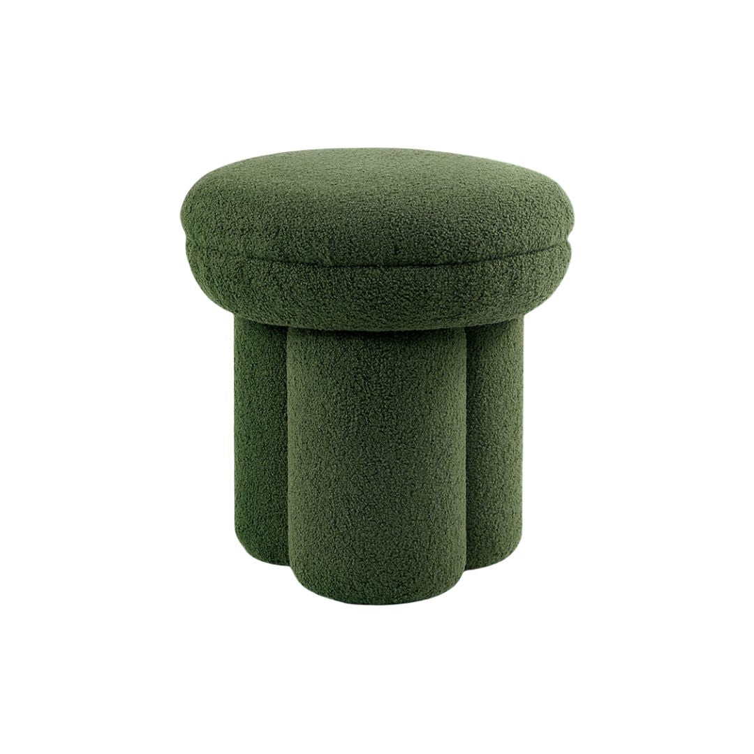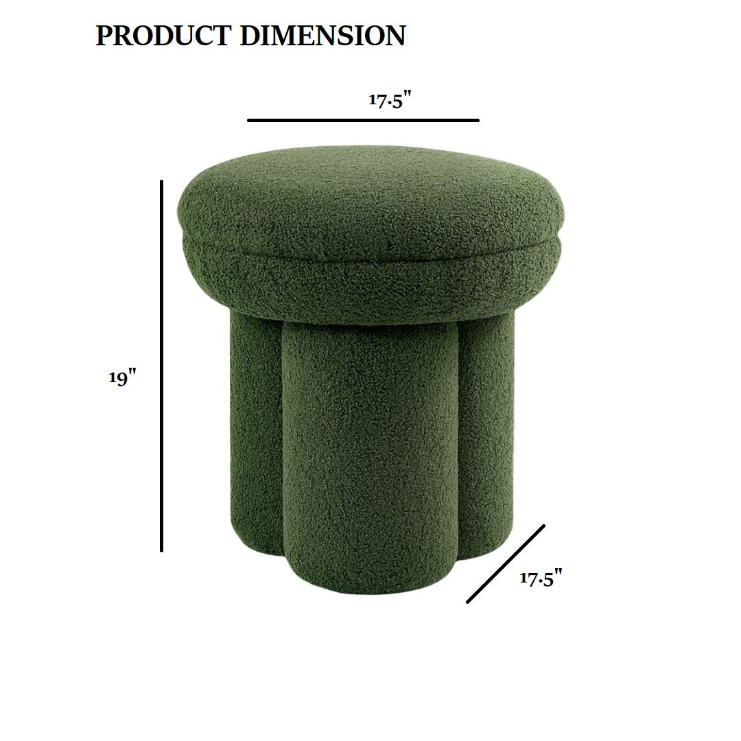 Elevate your living space with this contemporary round-top accent stool, designed to blend luxe texture with modern simplicity. Upholstered in plush green shearling (teddy-like) fabric, it offers a cozy, tactile focal point that works as extra seating, a footrest, or a stylish bedside bench. The compact silhouette and neutral-modern aesthetic make it versatile for living rooms, bedrooms, entryways, or dressing areas.