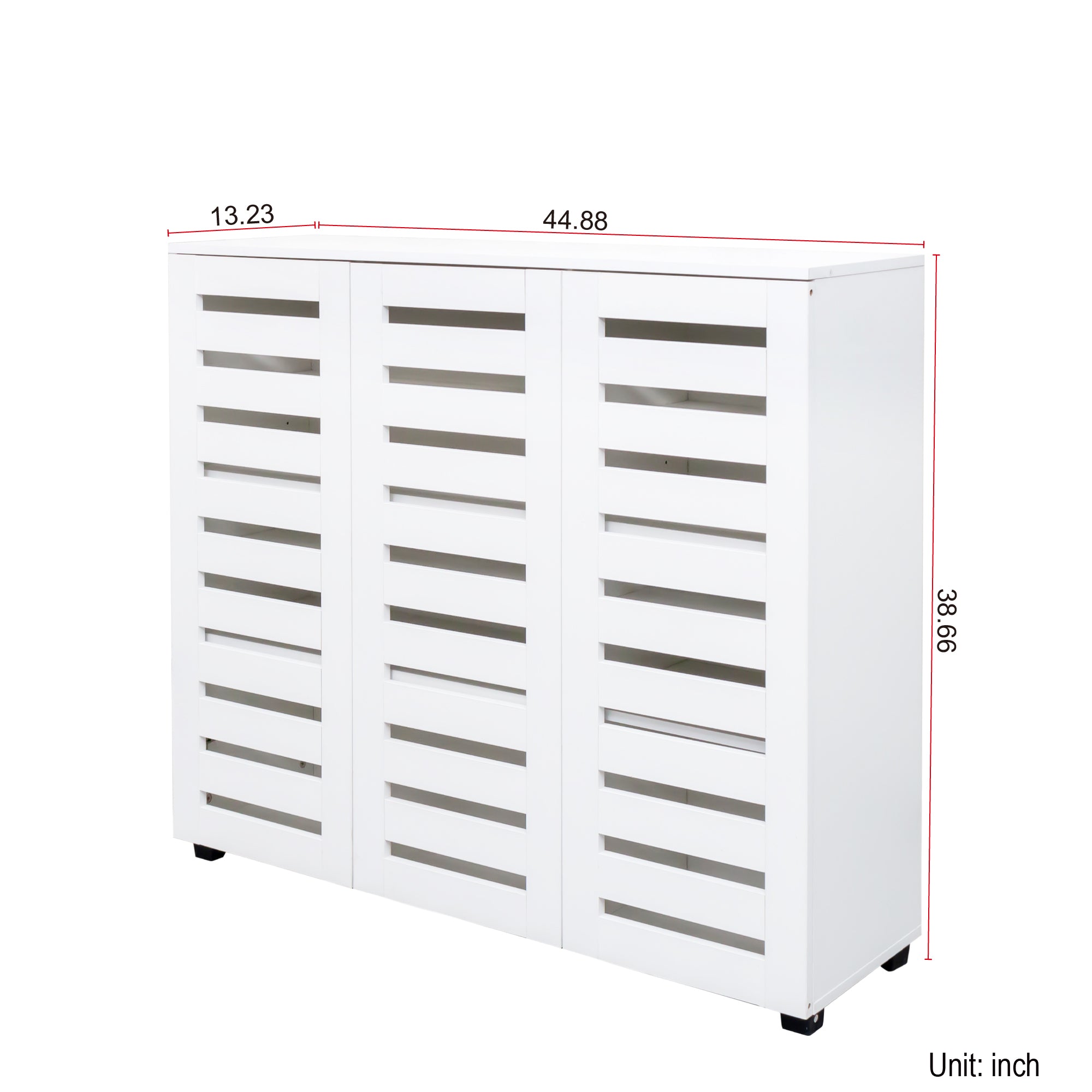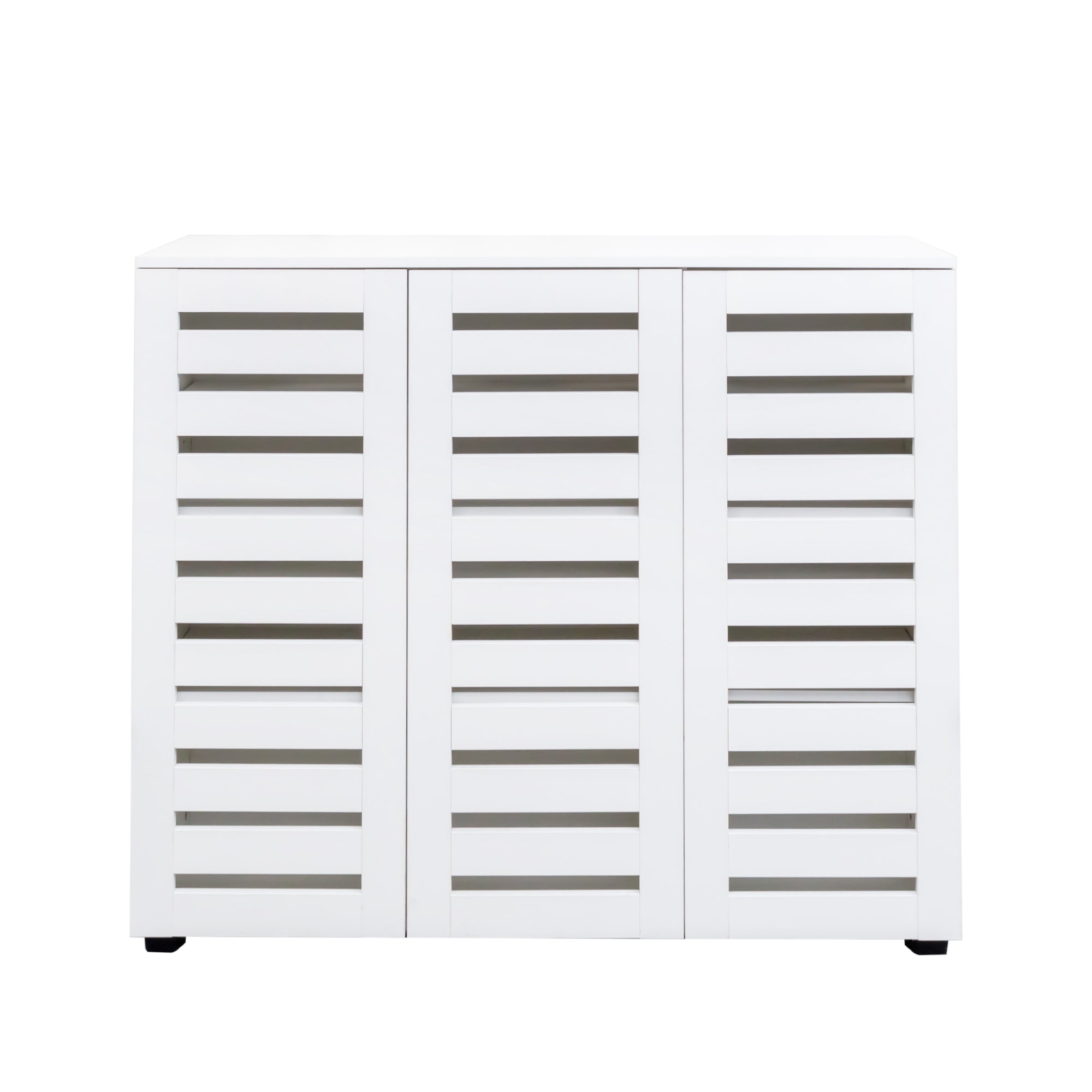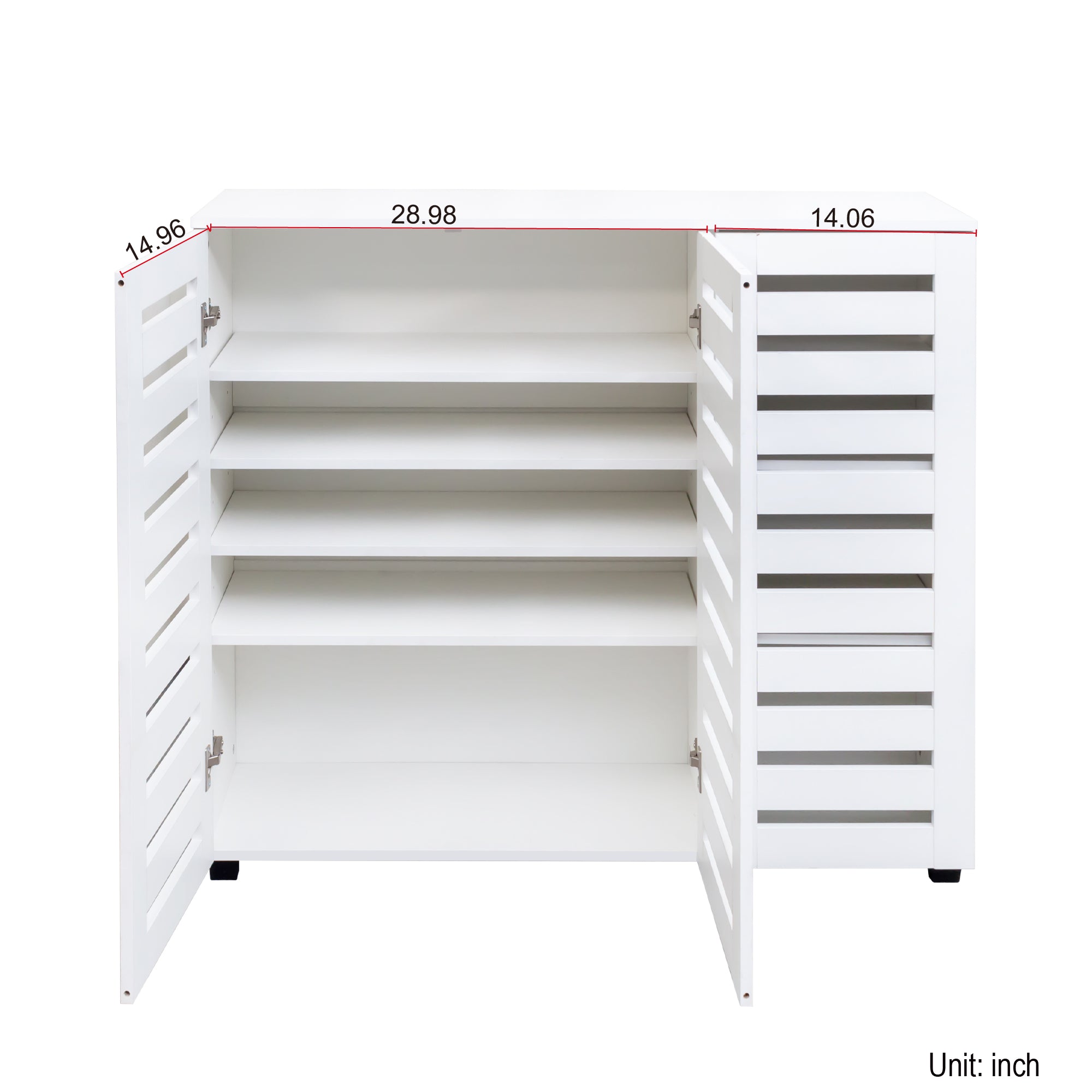 - Louvered Door Design: This shoe cabinet applies louvered doors for better ventilation and privacy