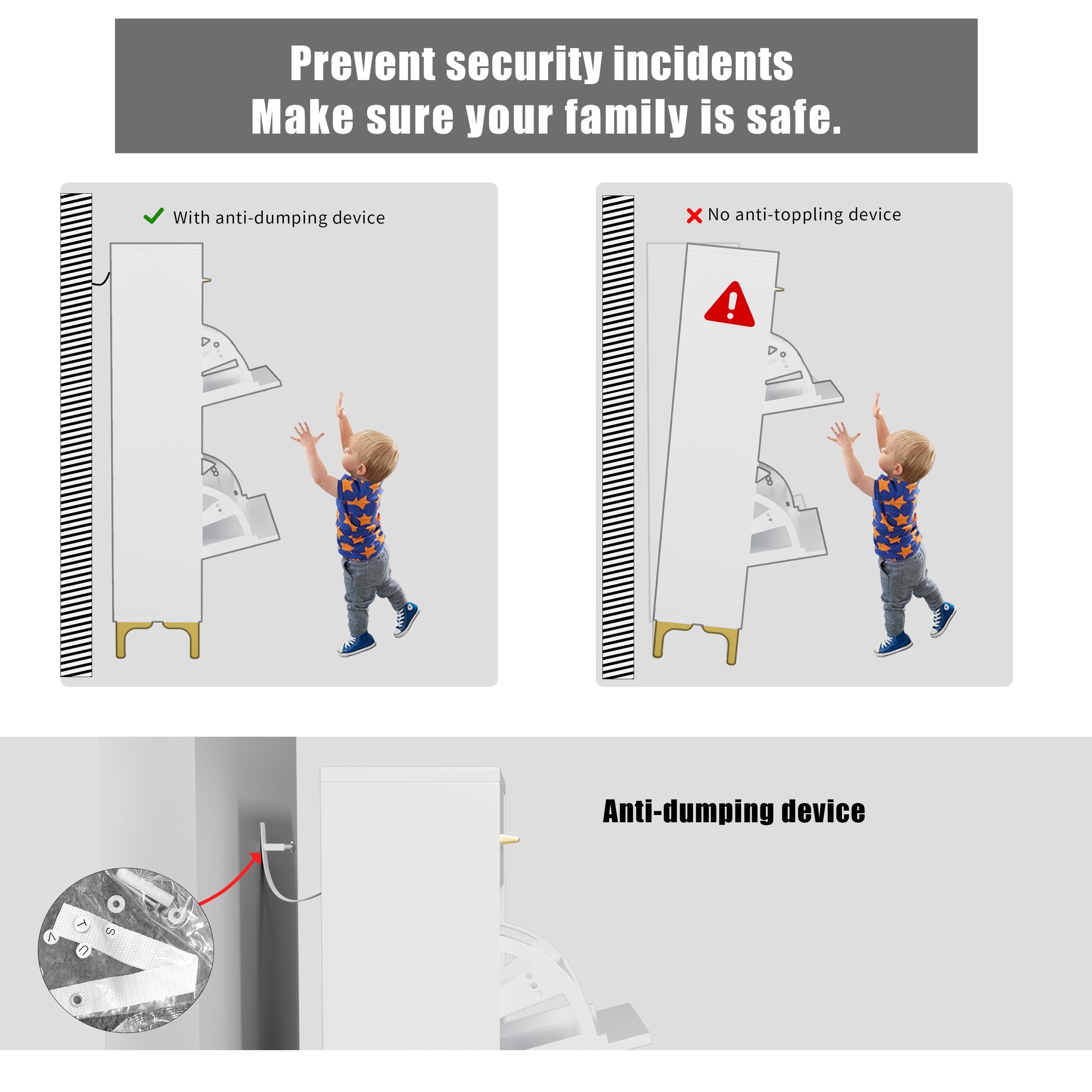 - Ample Storage Space: The shoe storage cabinet is designed with flip-top drawers, each drawer has two levels for optimal organization. Additionally, metal leg racks at the bottom provide extra space to store more shoes or facilitate daily cleaning.