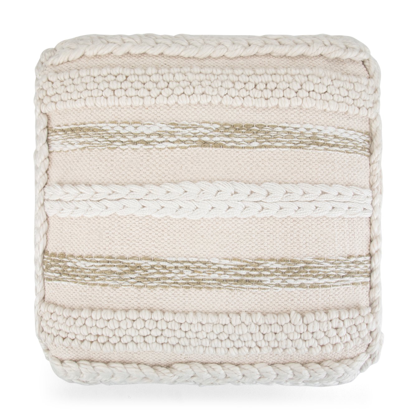 Add a warm, textured accent to any room with this handwoven square pouf — a lightweight, supportive, and versatile piece that works as a footstool, extra seating, or casual side table. Finished in a neutral beige woven cotton pattern, it blends easily with modern, boho, and transitional interiors while providing durable structure and everyday comfort.