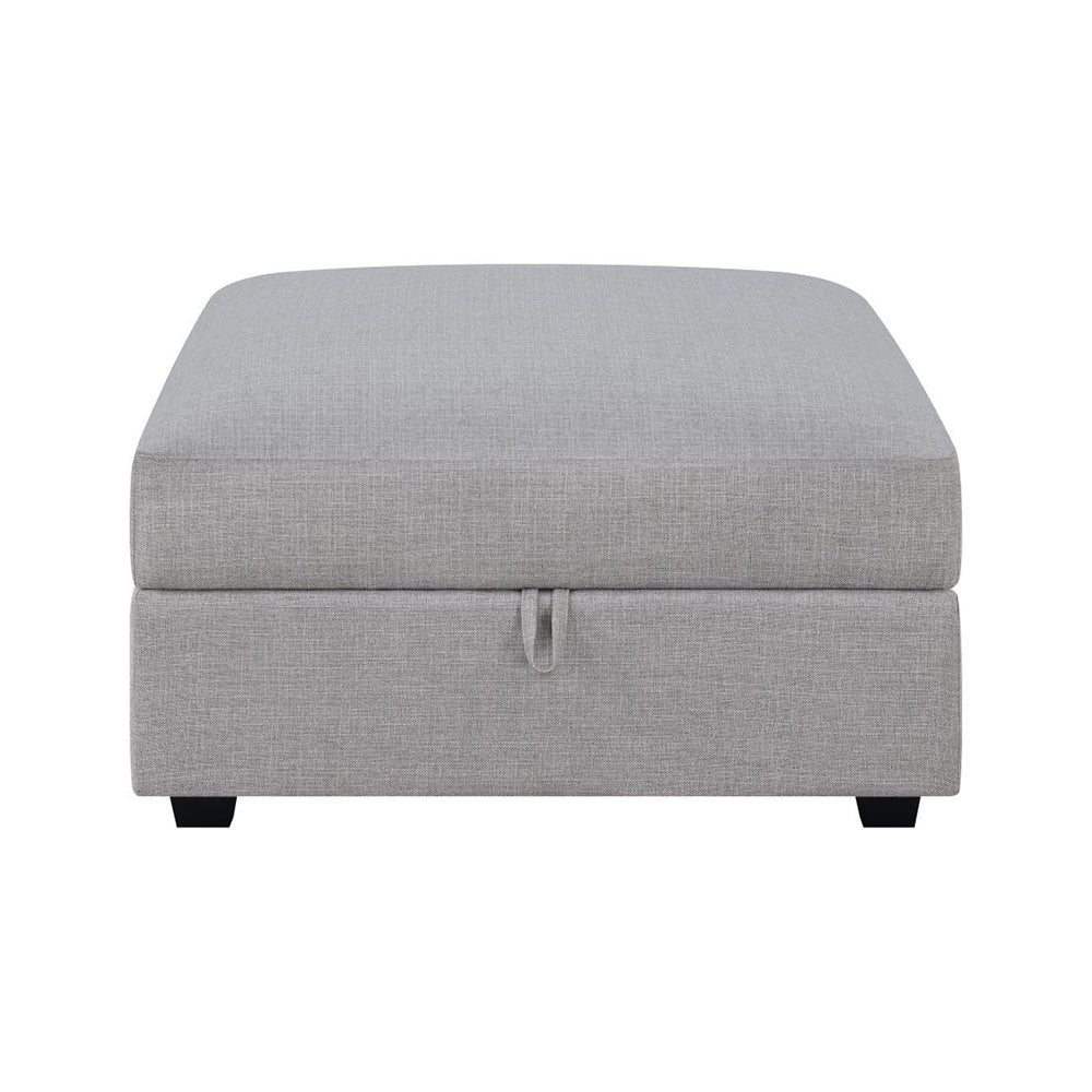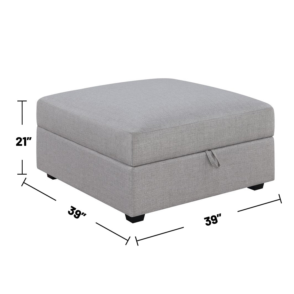 Add versatile style and practical storage to your living space with this grey upholstered storage ottoman — a modern, square piece that functions as extra seating, a plush footrest, or a discreet storage solution. Its clean lines and soft neutral upholstery make it easy to pair with a wide range of decor, while the hidden interior keeps blankets, pillows, and toys neatly out of sight.