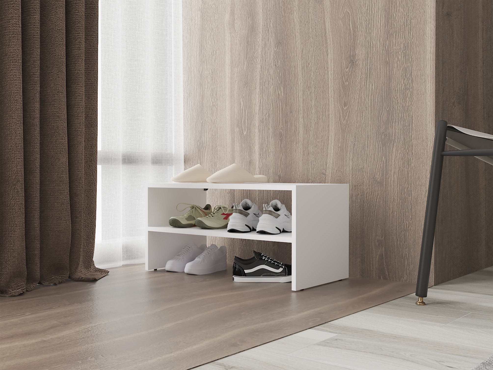 Keep your entryway or bedroom tidy with a versatile, compact shoe rack designed for everyday use. This modern white engineered wood unit offers practical, stackable storage that adapts to changing needs while providing a clean, organized look for shoes and small items.