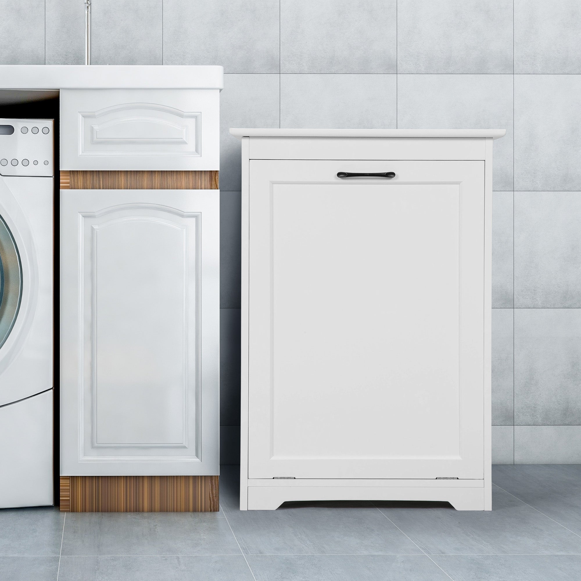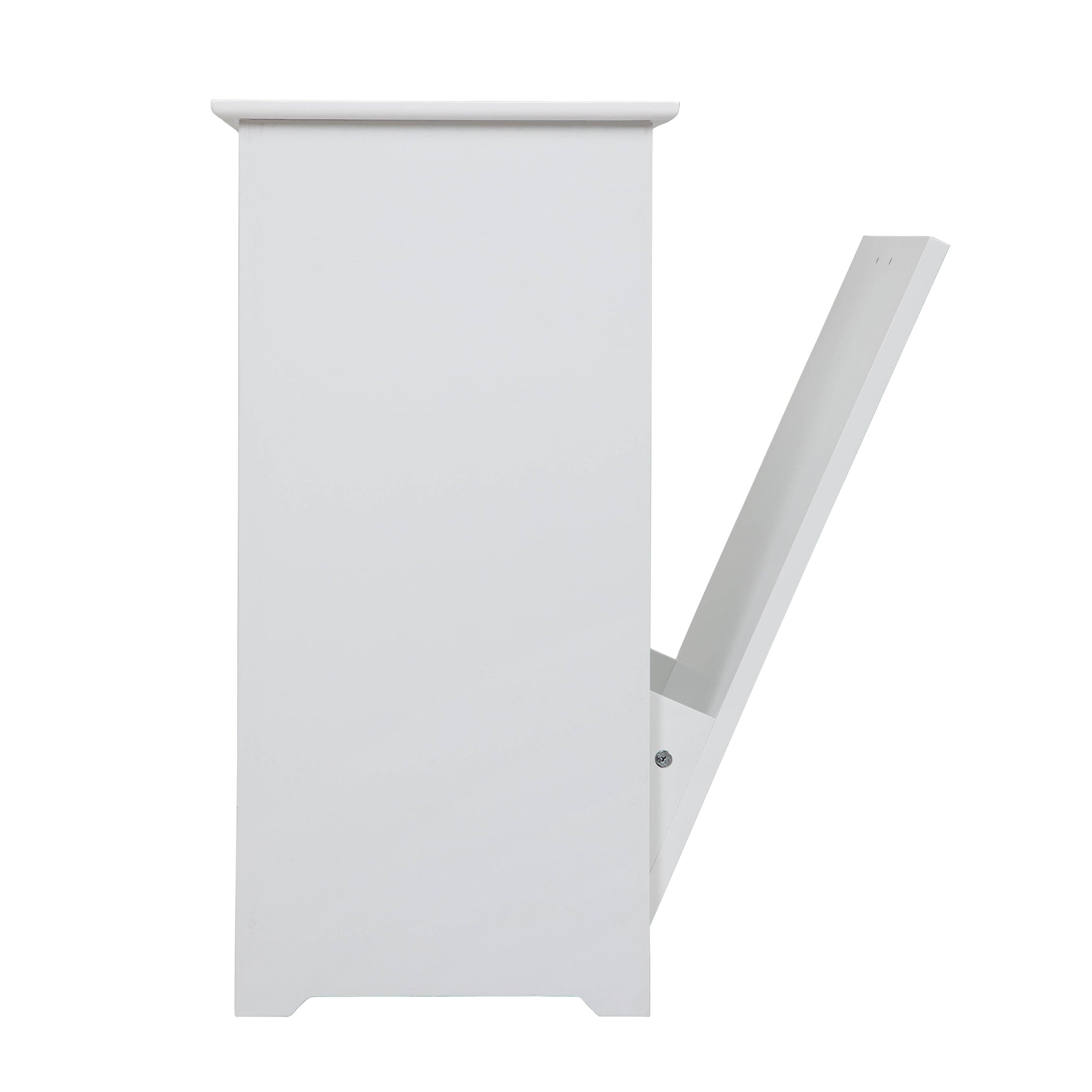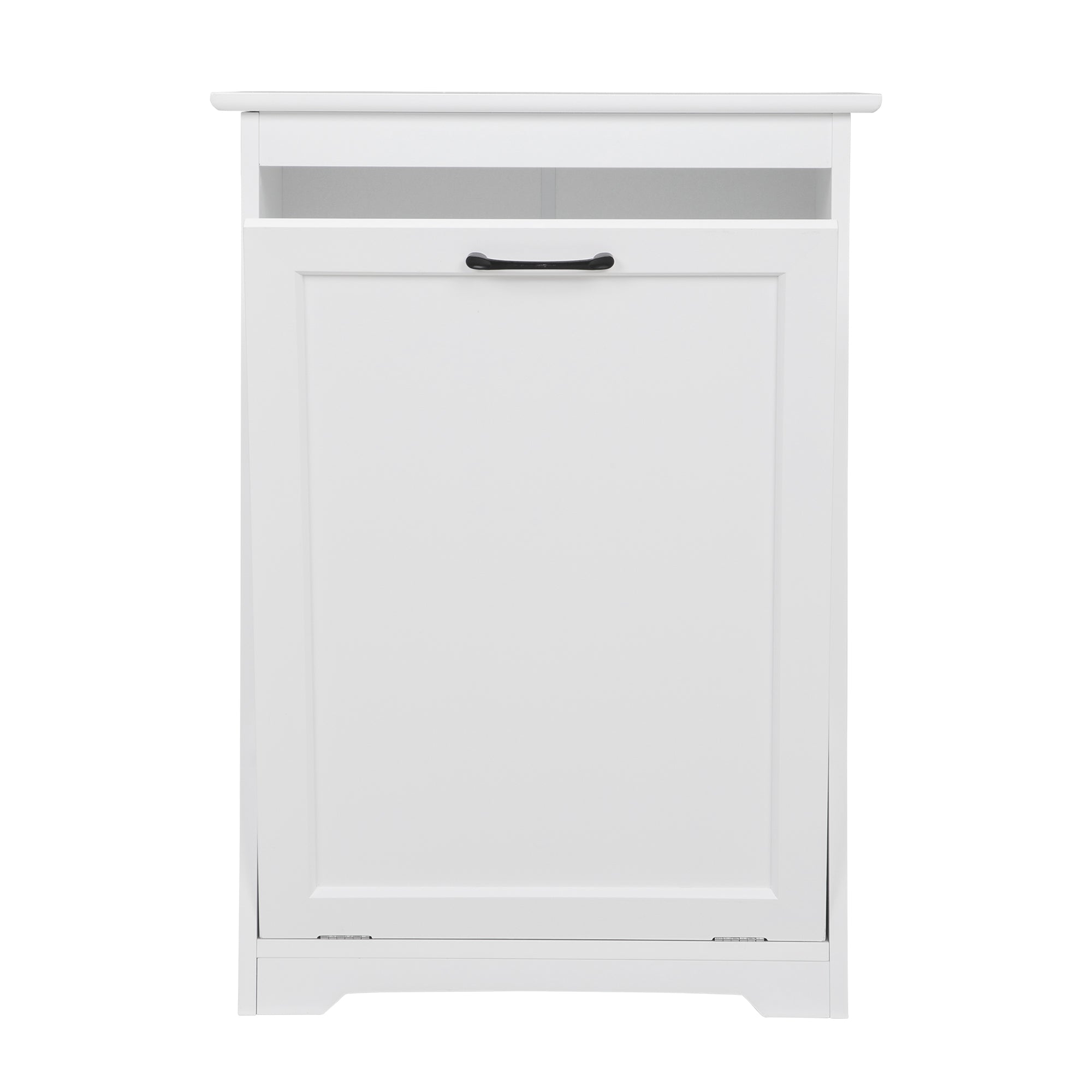 Keep trash out of sight without sacrificing convenience — this versatile trash can cabinet combines a clean, modern white finish with thoughtful functional design. Built from durable MDF, it stores a standard 13-gallon bin (not included) behind a tilt-opening door, keeping odors contained and your space looking tidy. Ideal for kitchens, living rooms, balconies, or utility areas, the cabinet balances sturdy construction with an easy-access tilt mechanism and generous internal capacity.