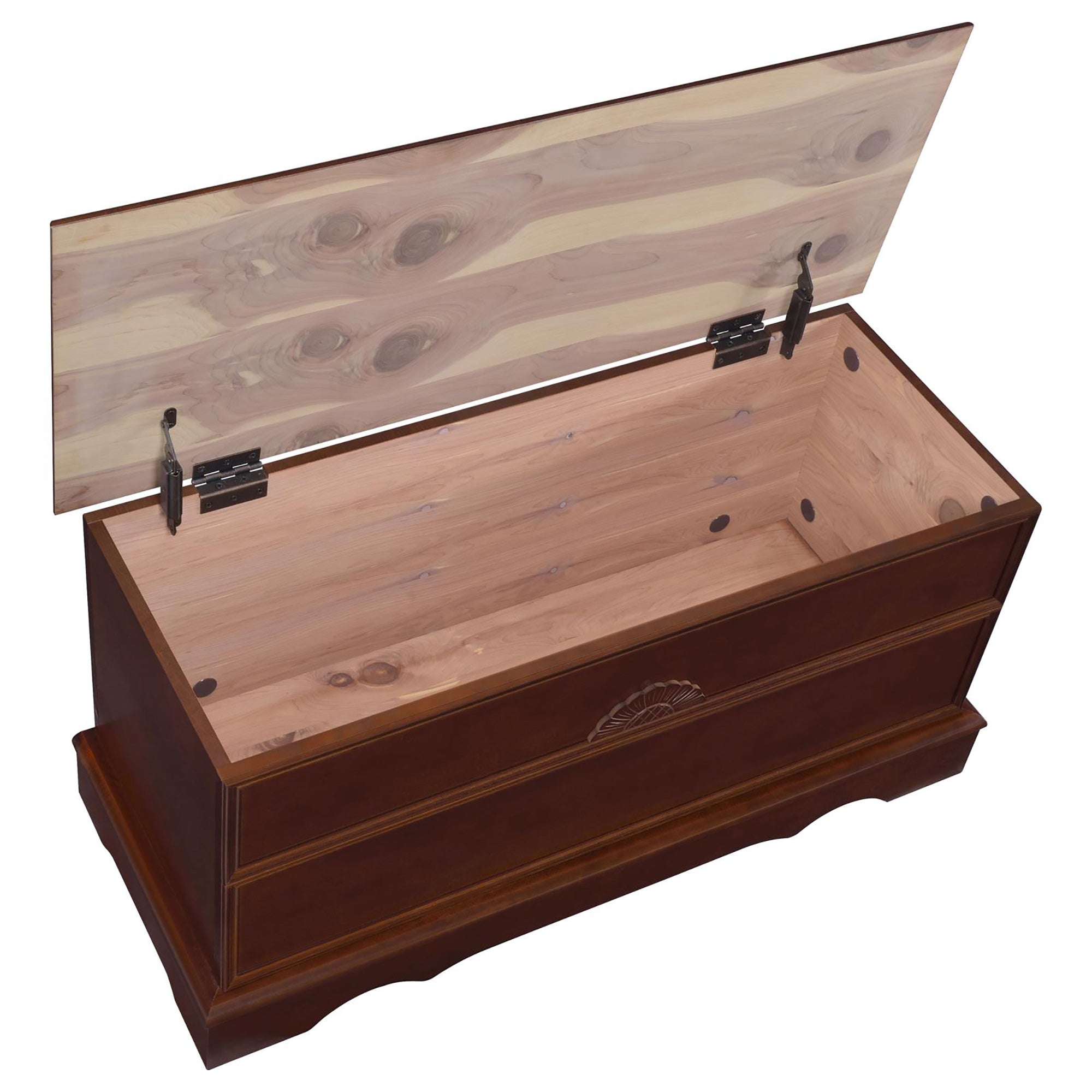 Preserve your cherished blankets, coats, and keepsakes with classic style and natural protection. This warm brown rectangular cedar chest combines roomy storage with traditional detailing—ideal for a bedroom, hallway, or at the foot of a bed. Solid cedar construction provides natural moth- and odor-resistance, while the scalloped base molding and center floral motif lend an elegant, timeless look that complements both vintage and transitional décor.