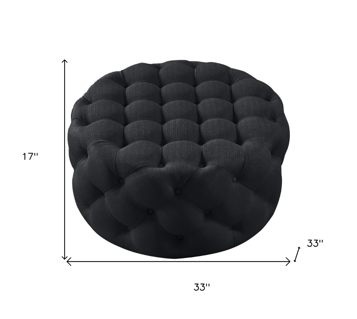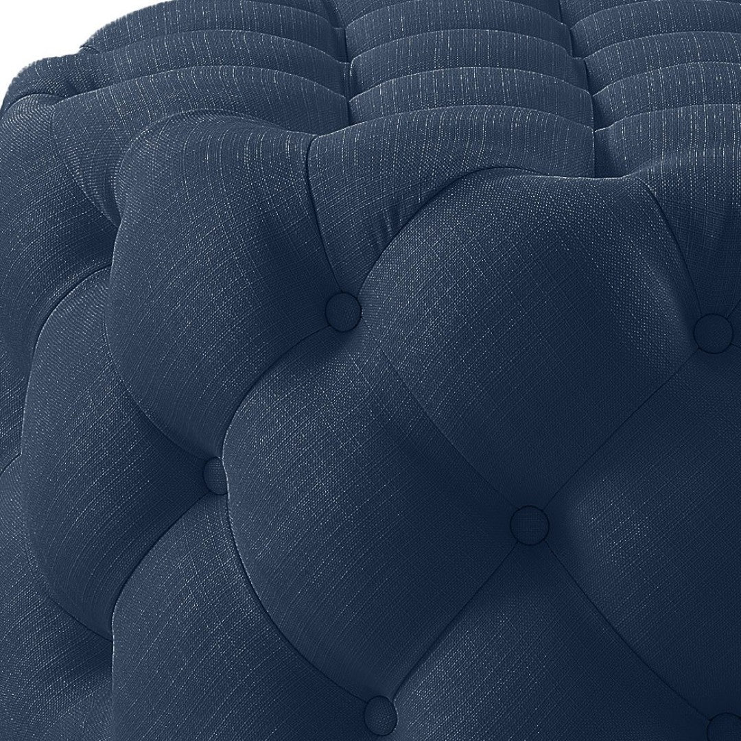 - A fashionable centerpiece to your room, upholstered in durable heathered linen with all over button tufted detailing.