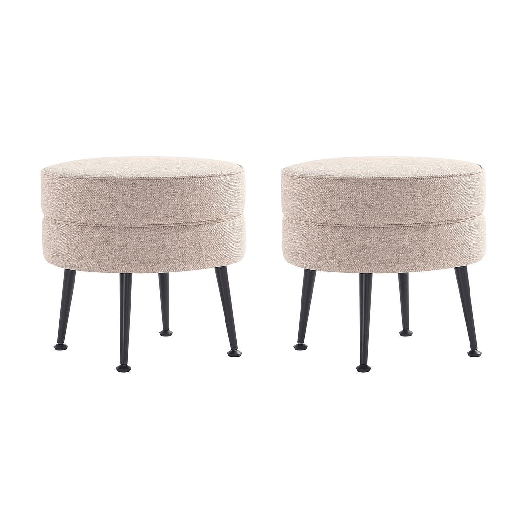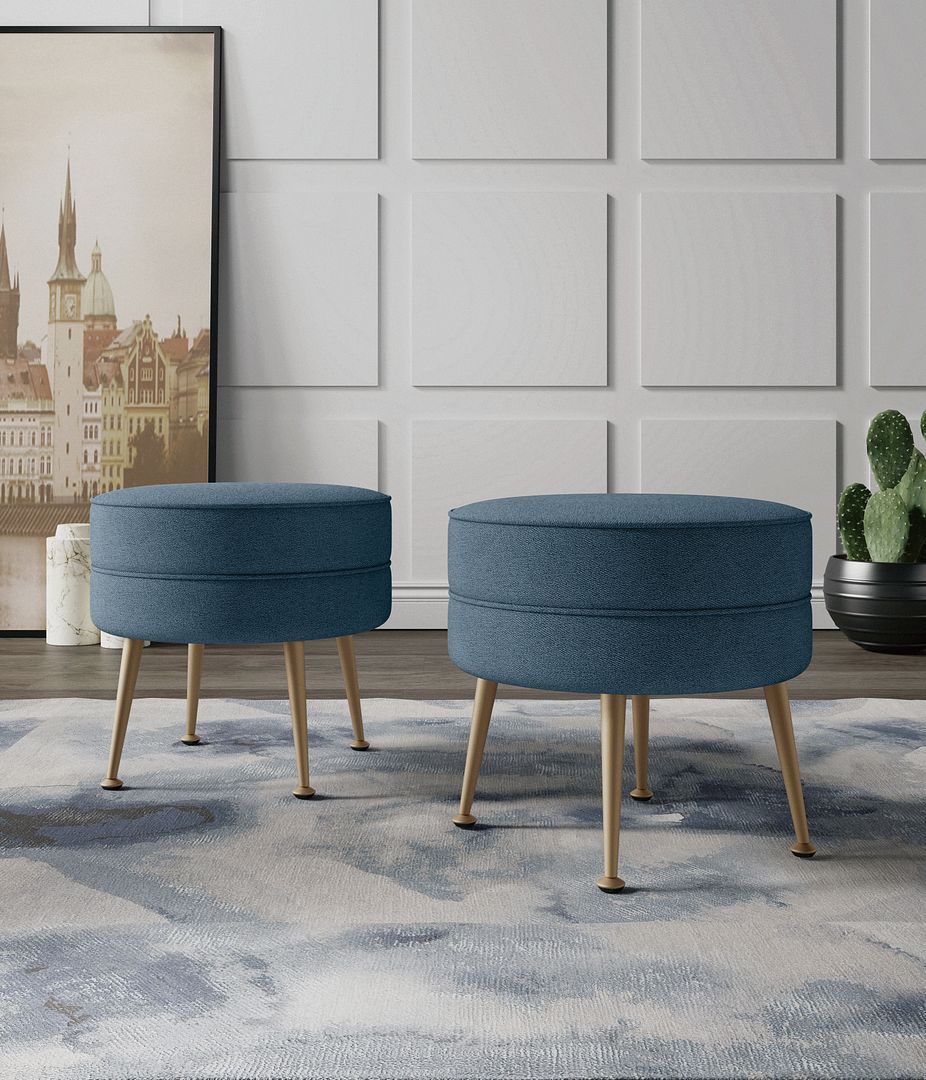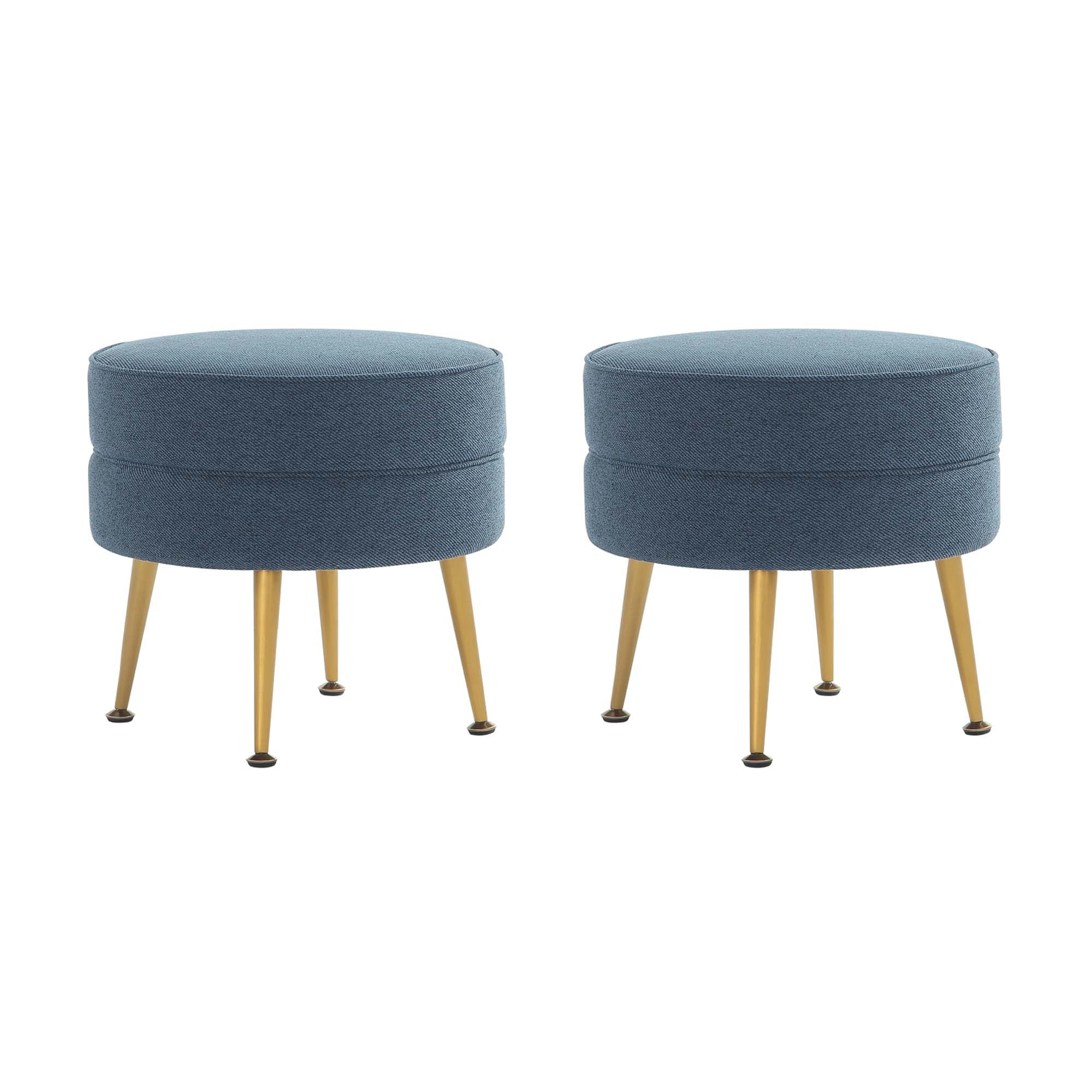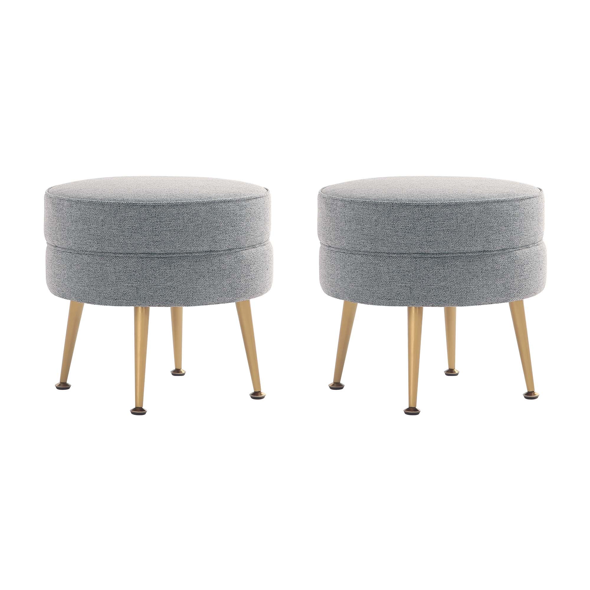 Description for 2-OT003-OT Manhattan Comfort Bailey Mid-Century Modern Woven Polyester Blend Upholstered Ottoman in Oatmeal with Gold Feet - Set of 2