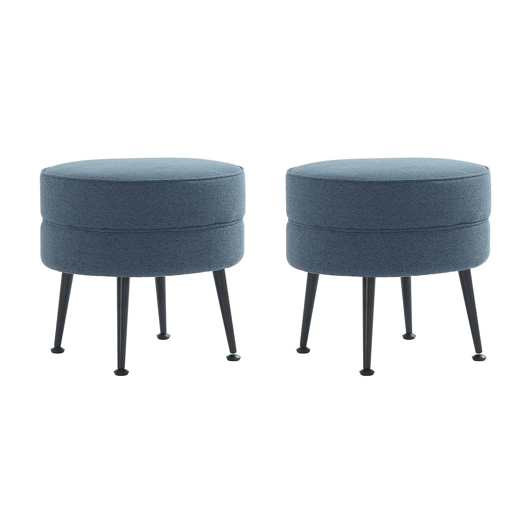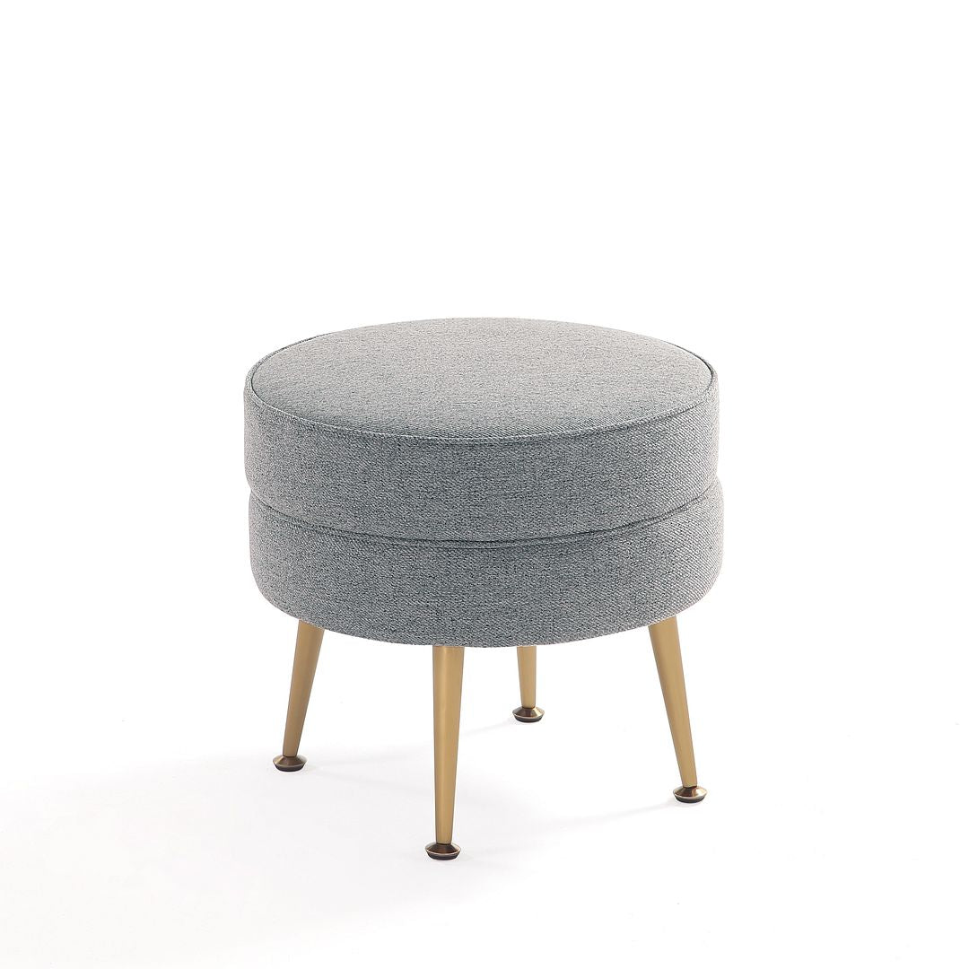 Easy living. Kick back and make yourself at home with this sleek cushioned ottoman. Crafted with sturdy stainless steel legs, its straightforward design has classic mid-century American appeal. The simplicity of form effortlessly complements a variety of chair styles, while its beautiful splayed legs and textured upholstery make it a decorative accent all on its own. Light and easy to place it wherever you need it.- Mid-Century Modern Ottoman Perfect for Living Room Use.