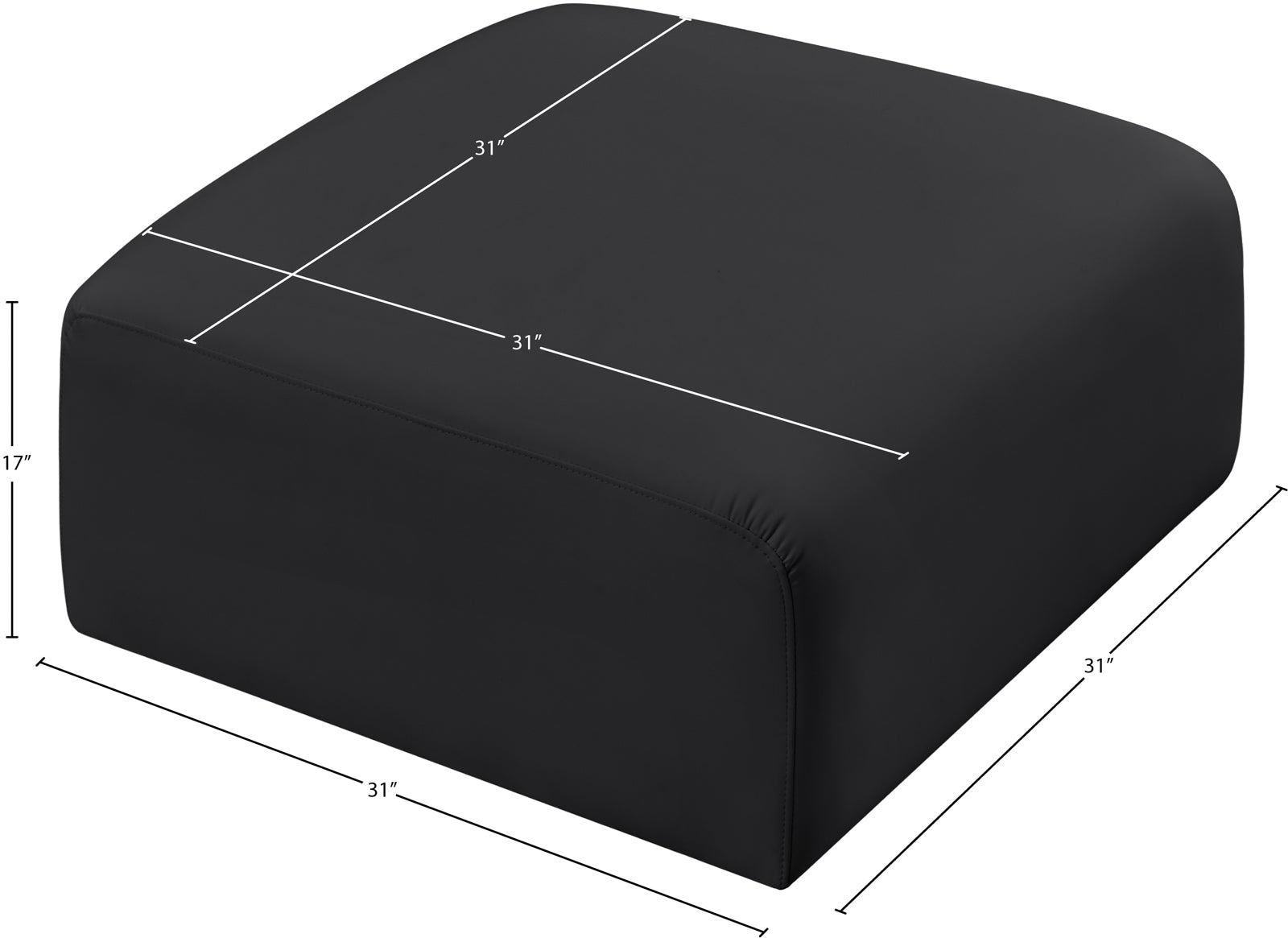 - Dimensions: 101Black-Ott Arc Black Vegan Leather Ottoman - 31" W x 31" D x 17" H