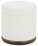 - Classic white upholstery paired with a walnut-finished base for a striking contrast