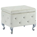 - Diamond-patterned, crystal button tufting on high-sheen velvet upholstery