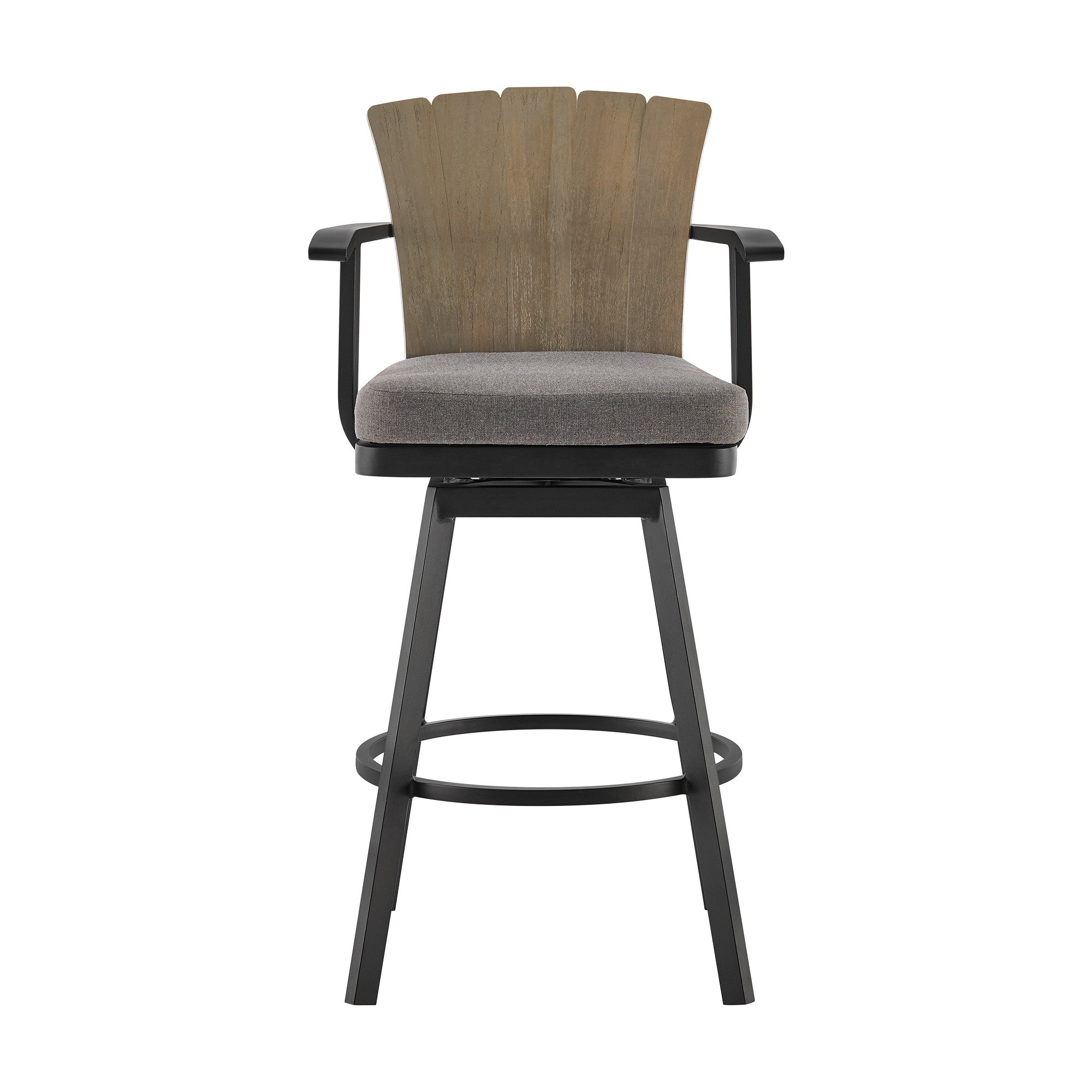- Stylish square seat outdoor bar chair with a full back design and a sleek black metal frame.
