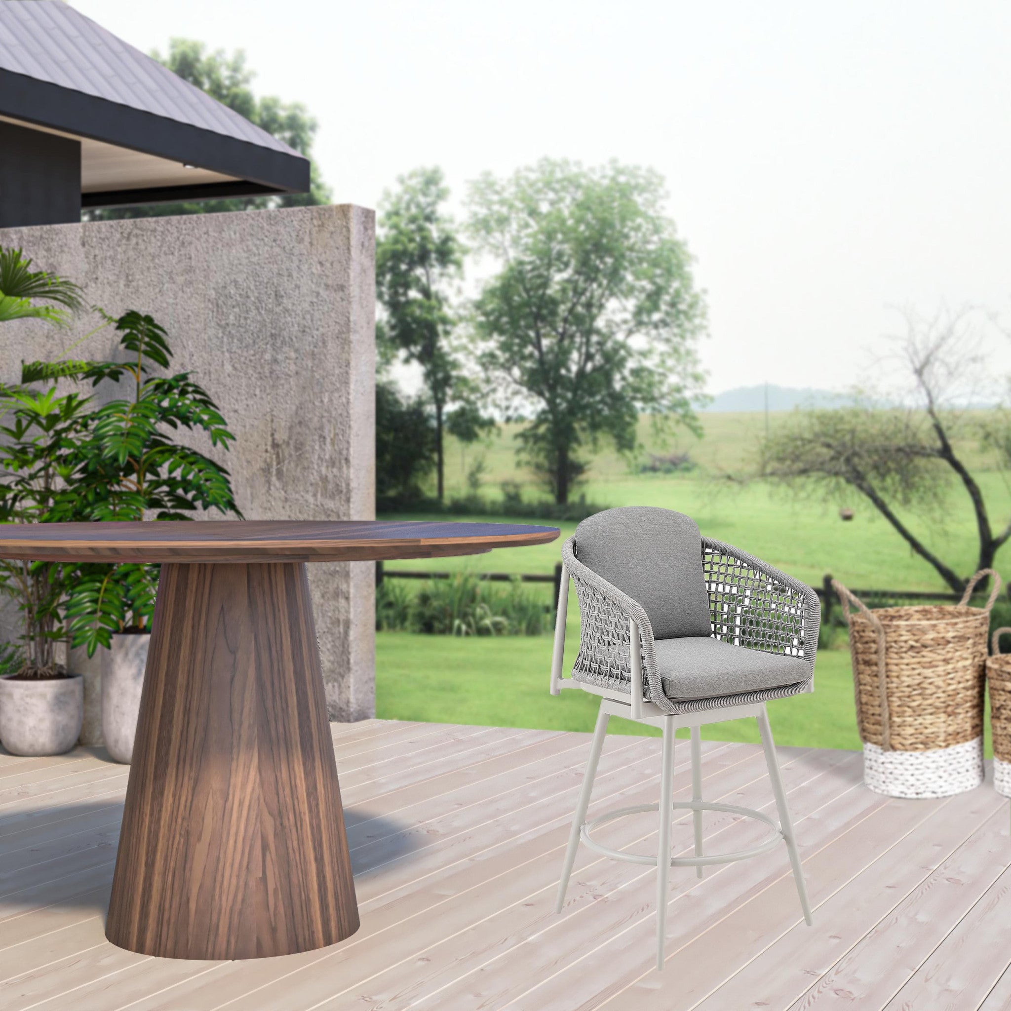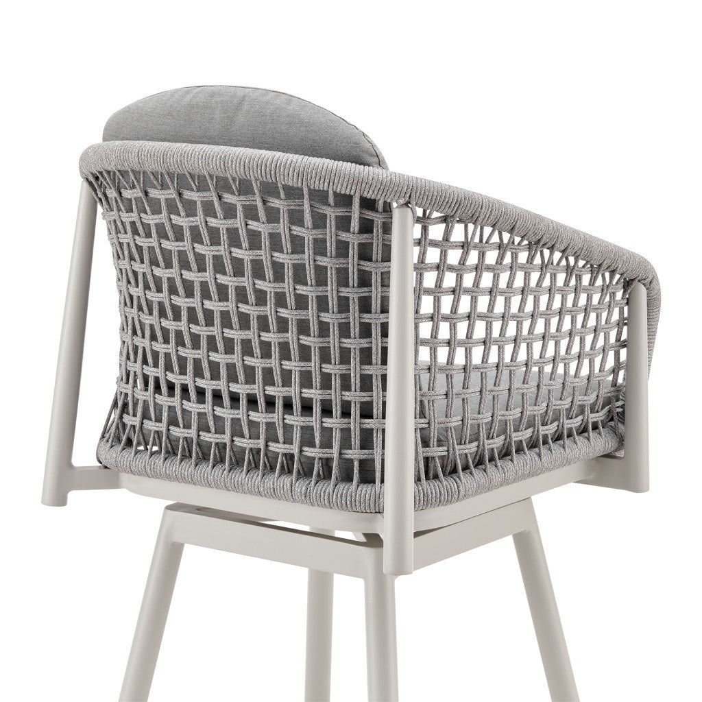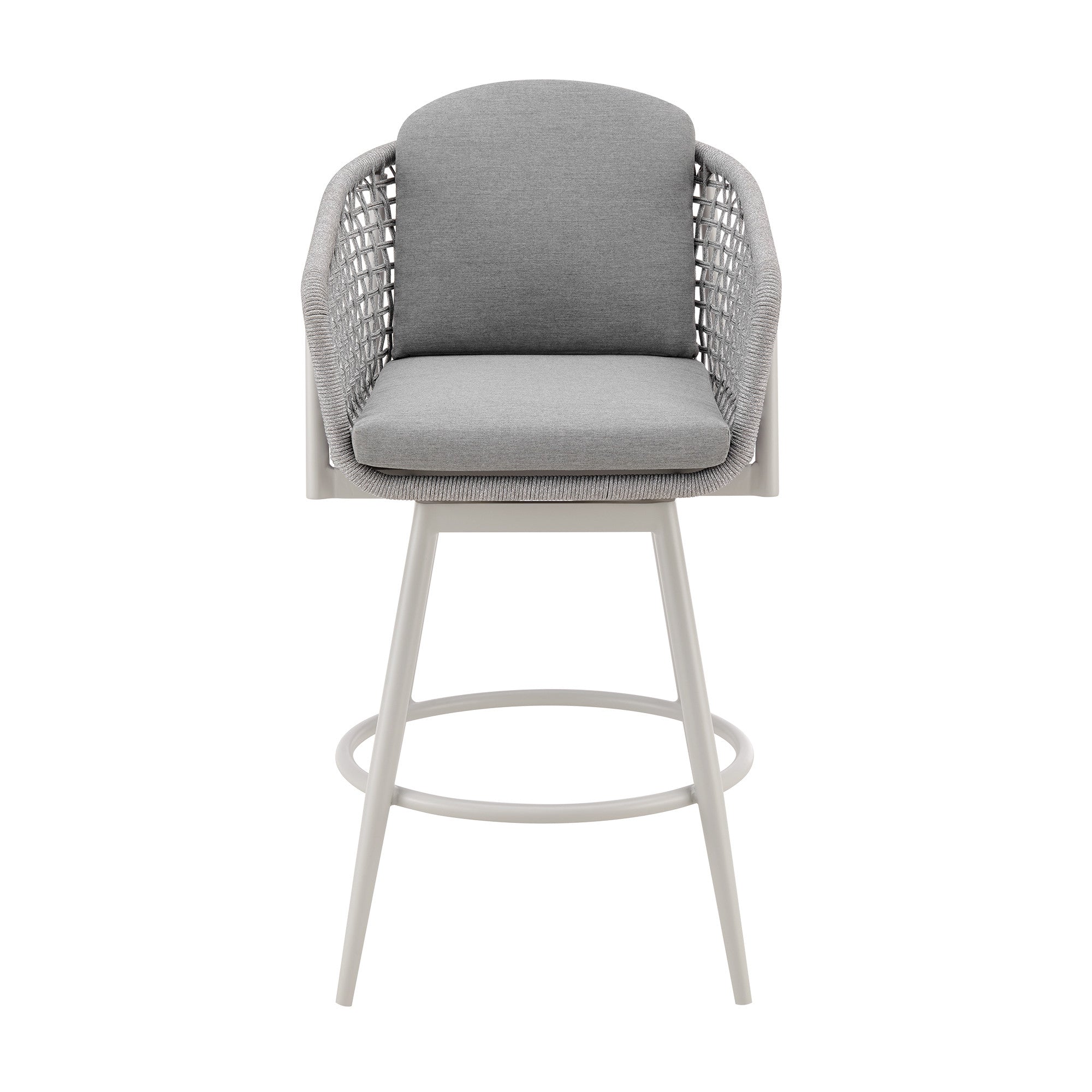 - Metal outdoor bar chair with round seat in light gray
