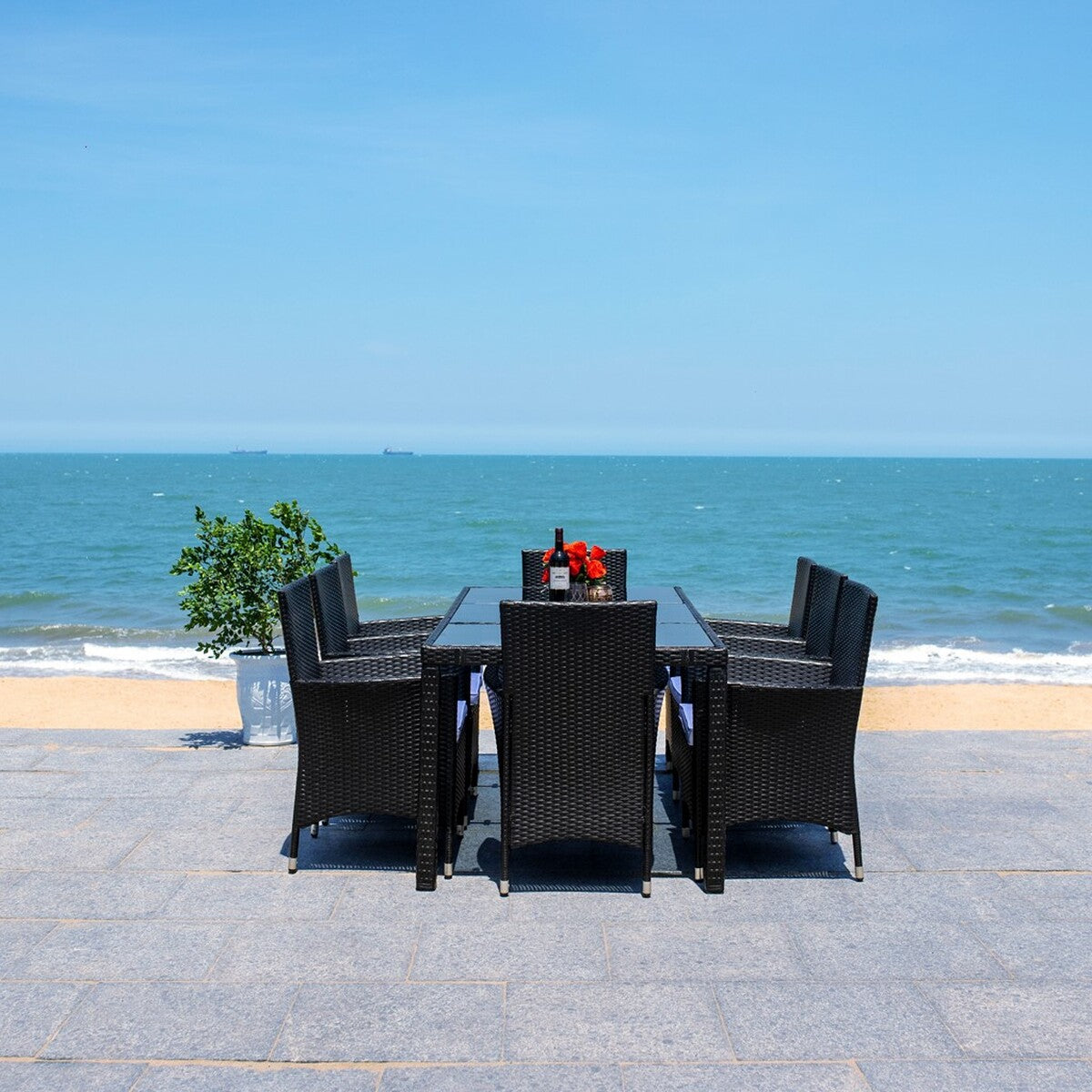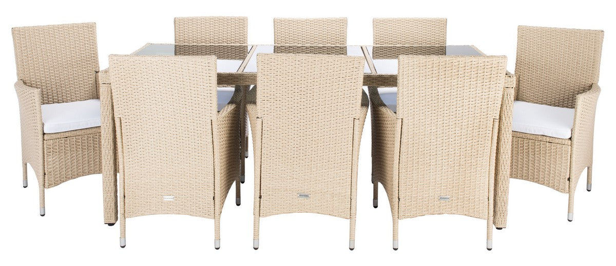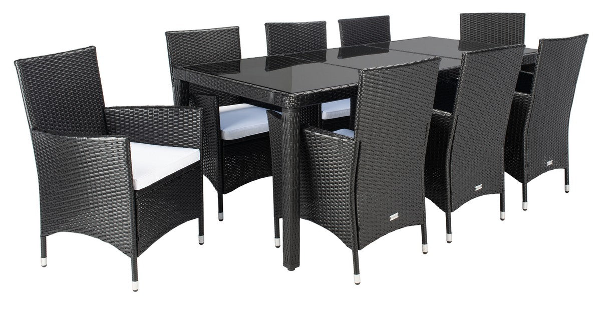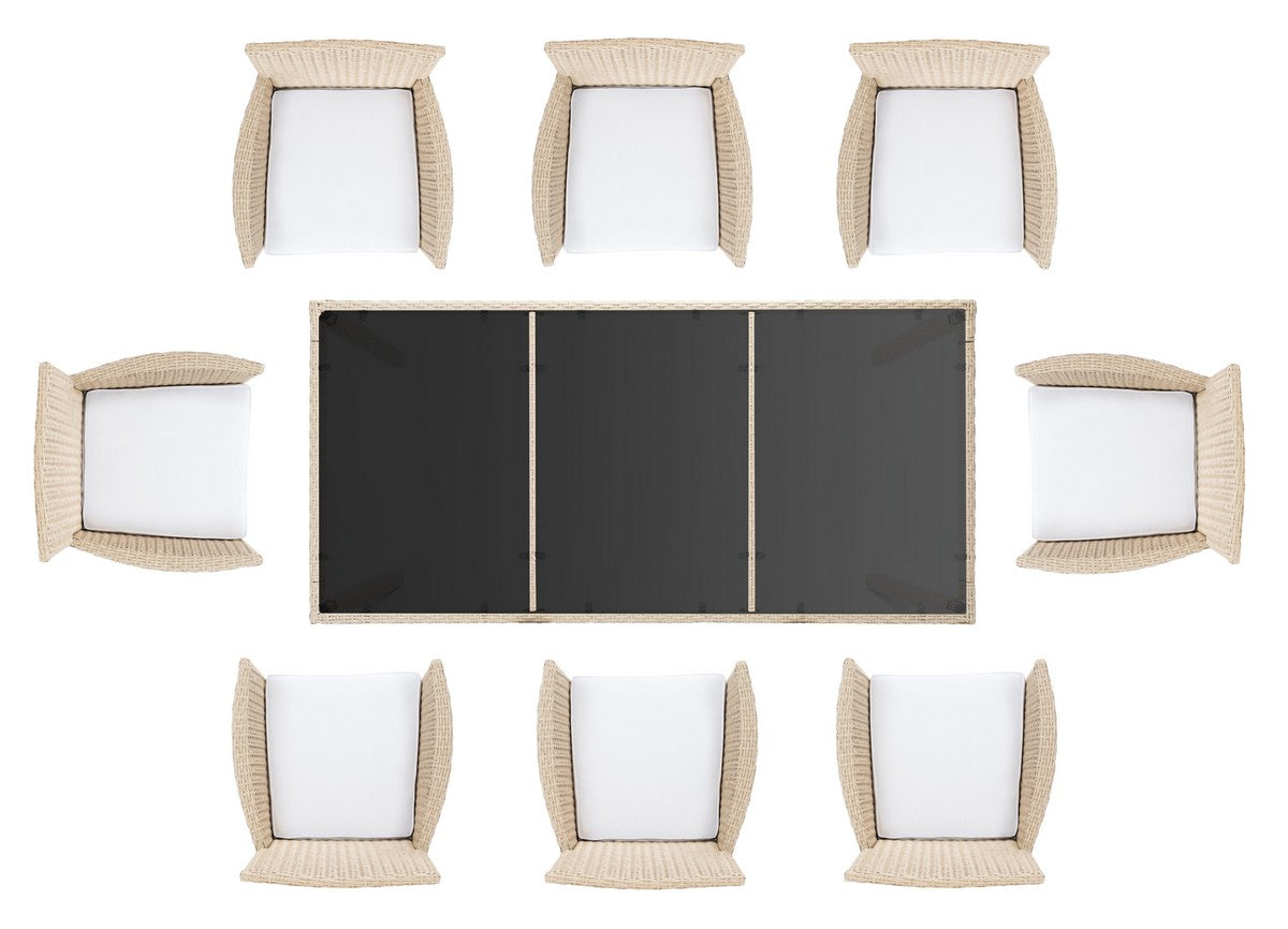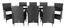 - Full Dimensions [W / D / H]: TABLE: 76.8" x 35.4" x 29.5" CHAIR: 22.8" x 22.8" x 34.6"