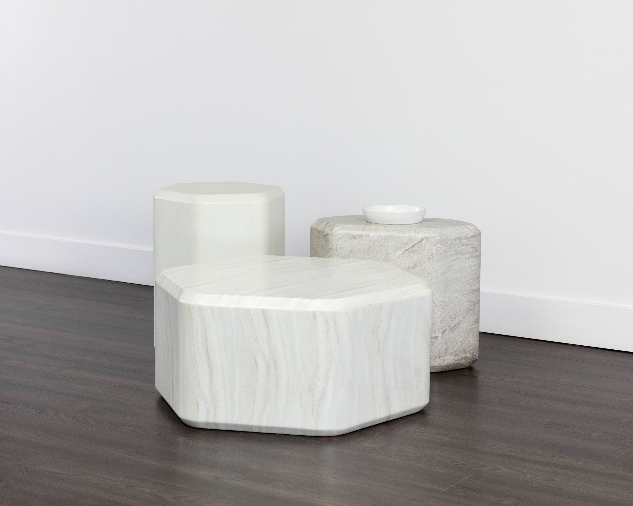 - Dimensions: Spezza Side Table - Low - Marble Look - Grey 108957 = 22.75W x 12D x 18.75H | 59lbs