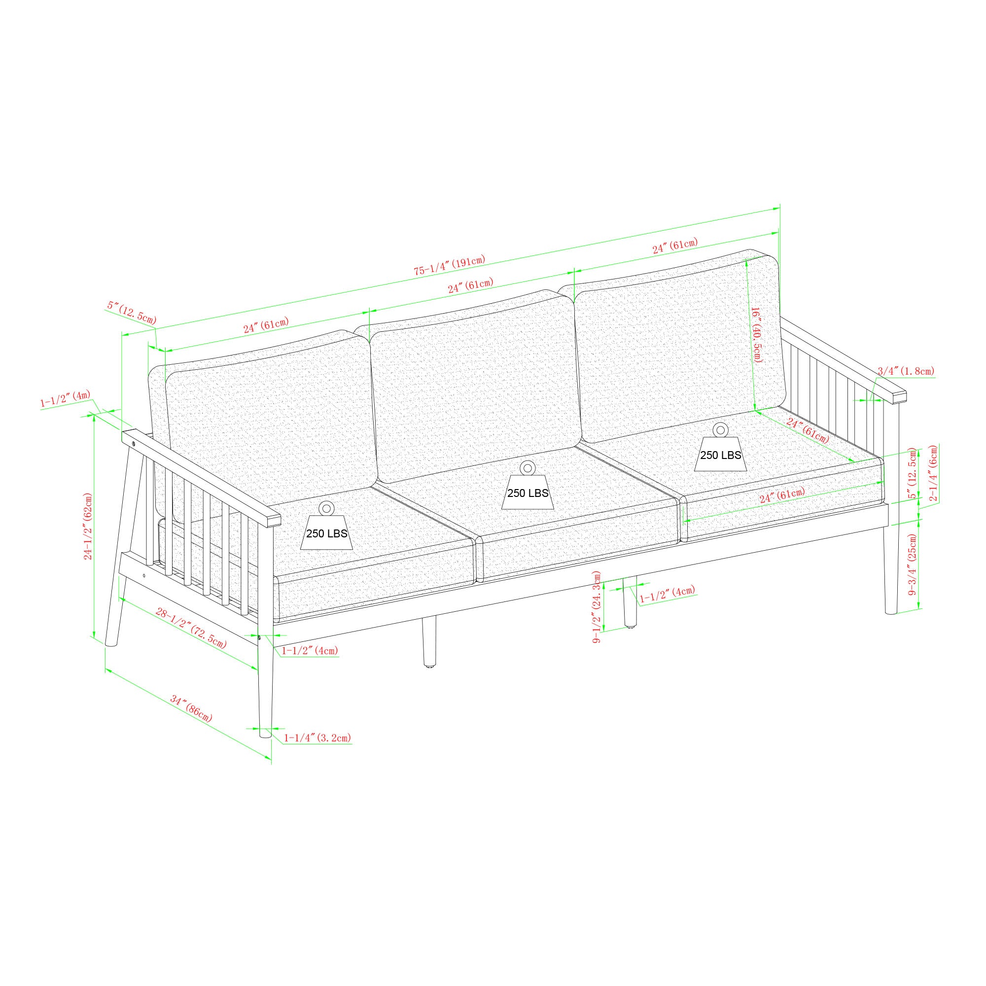 - Dimensions: CIROD3LBRP Modern Outdoor Spindle Style Triple Lounge - 33" H x 75.25" L x 34" W