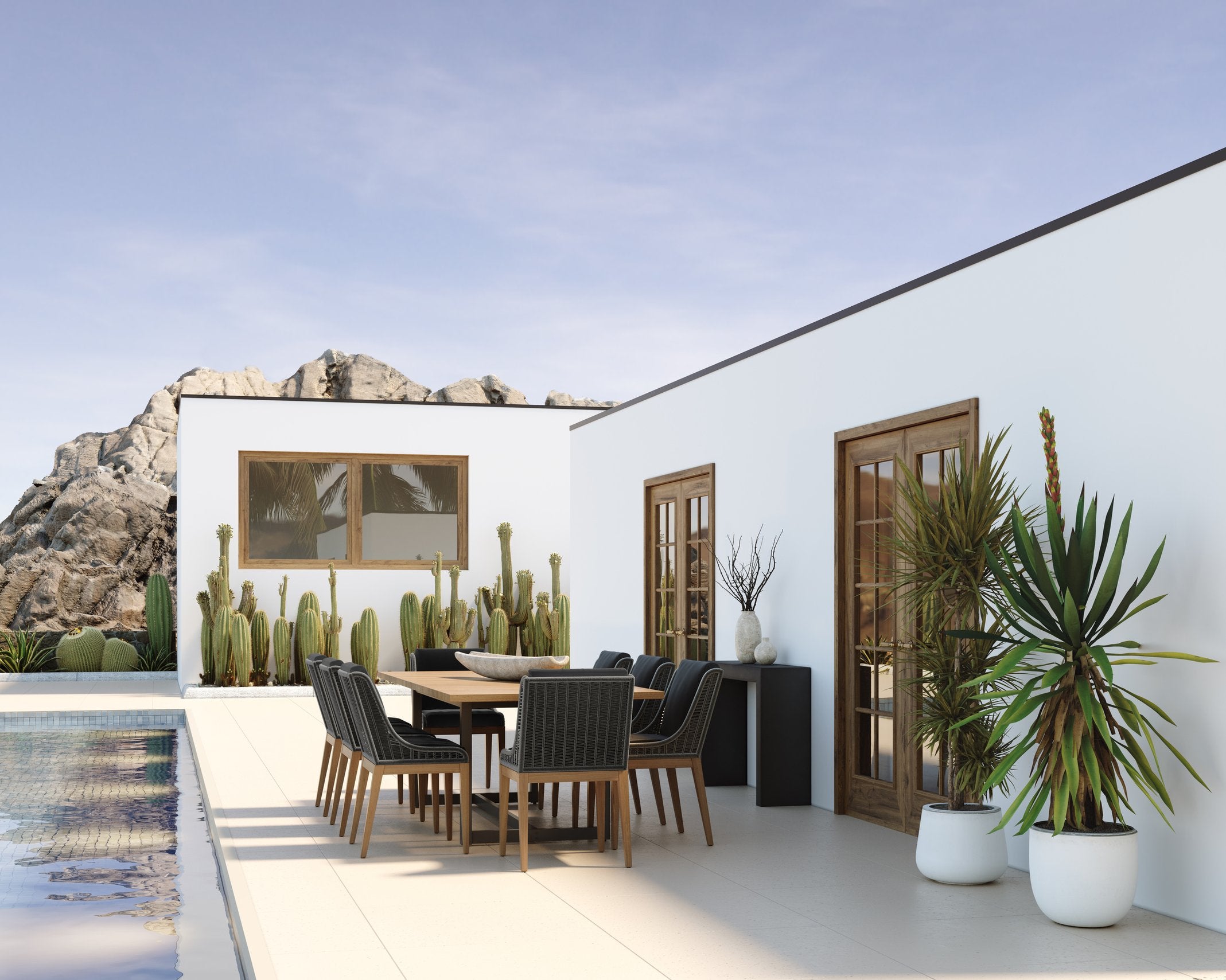 - Style1: Solid Teak Wood / Powder Coated Aluminum / Greymix Weave on Grey Aluminum Frame
