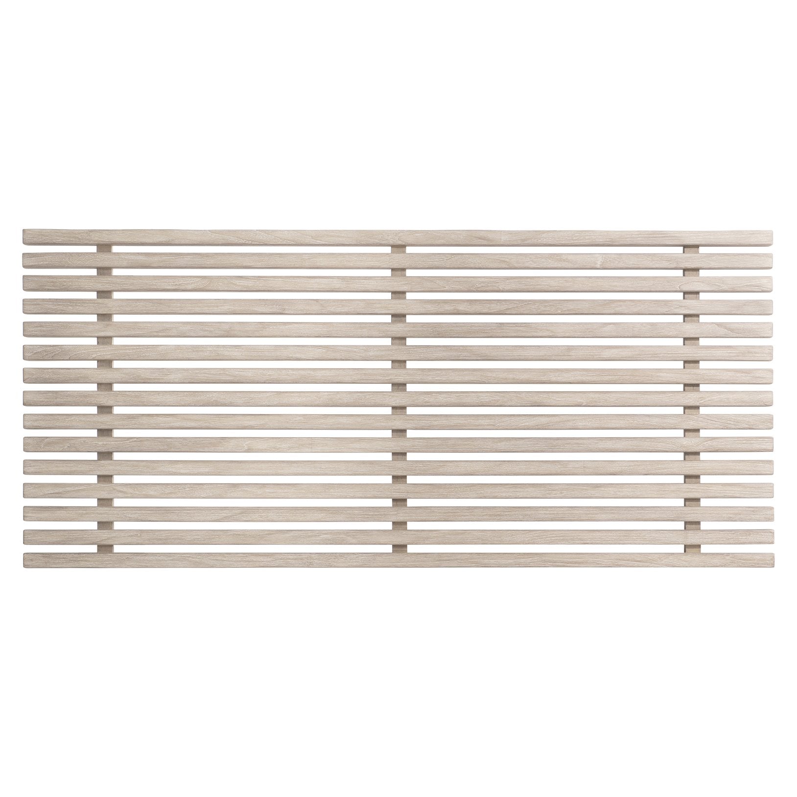 - Carbonized teak slatted top in Sea Oat finish — naturally durable, water-resistant, and develops a rich patina over time