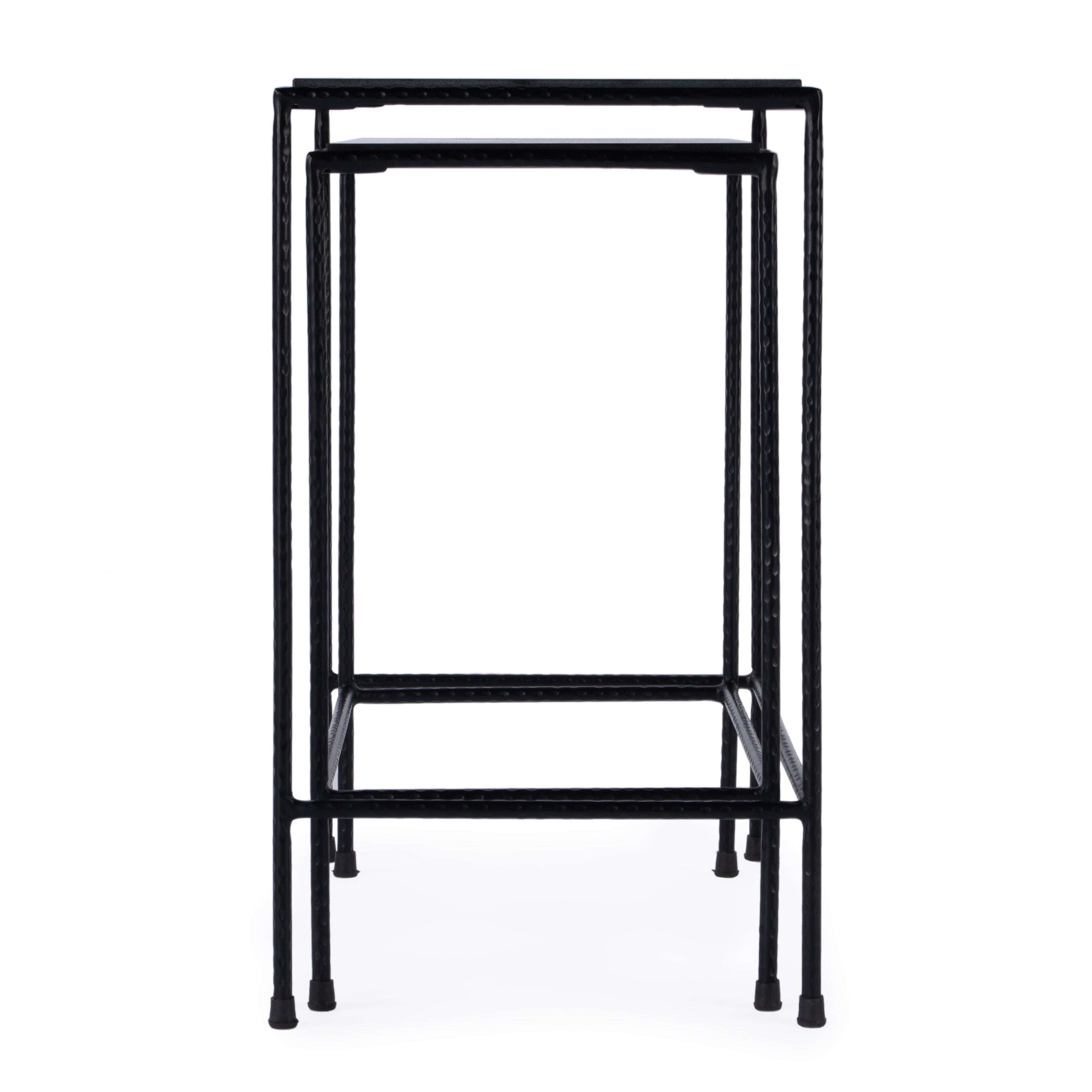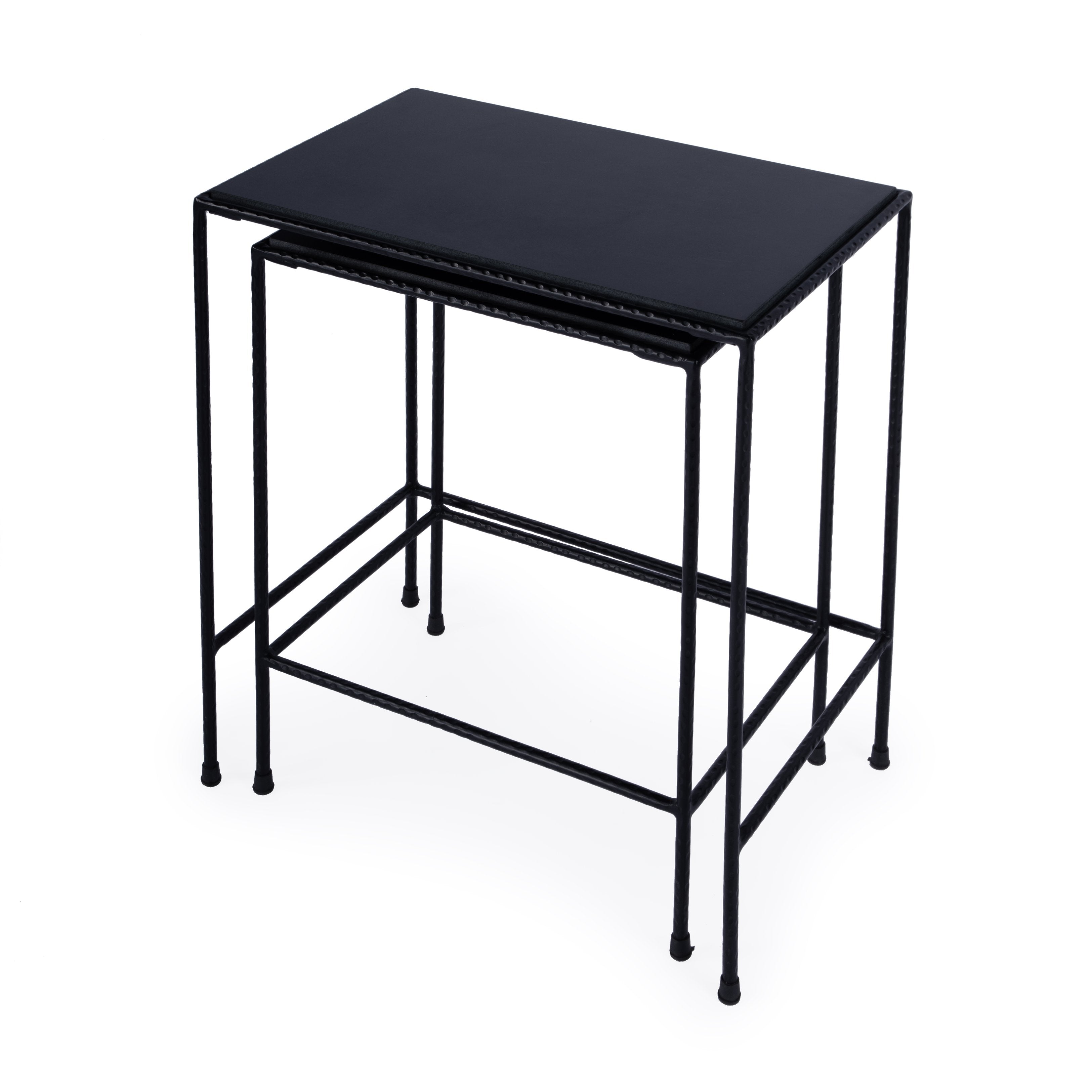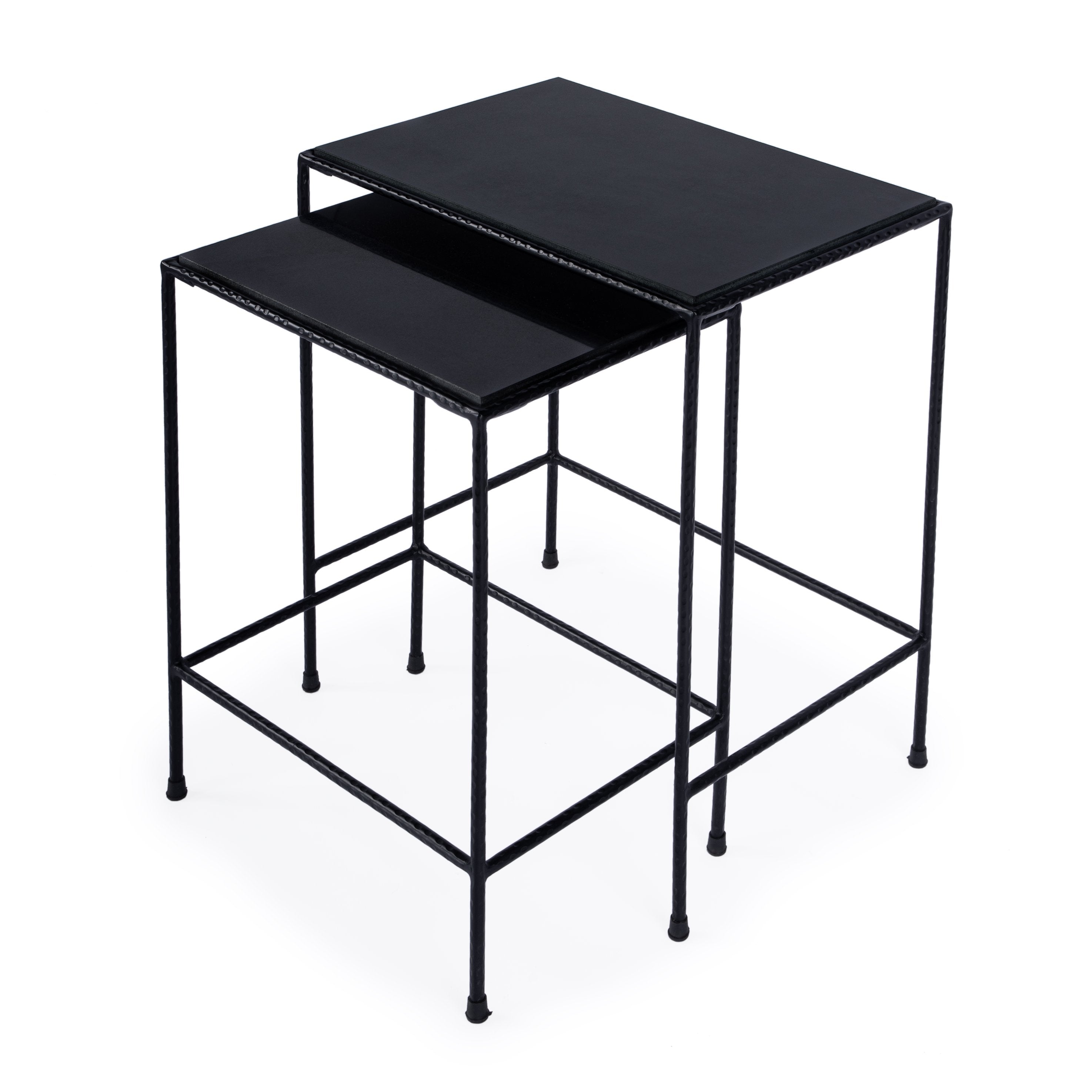 - Large table features missing lower support rail to allow nesting smaller table underneath