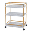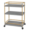 - Features 3 tiers of shelving with the top and bottom featuring an aluminum open gallery wall. The wall sits 3.5" above the shelf, while bottom raised wall sits 2.5" above shelf edge