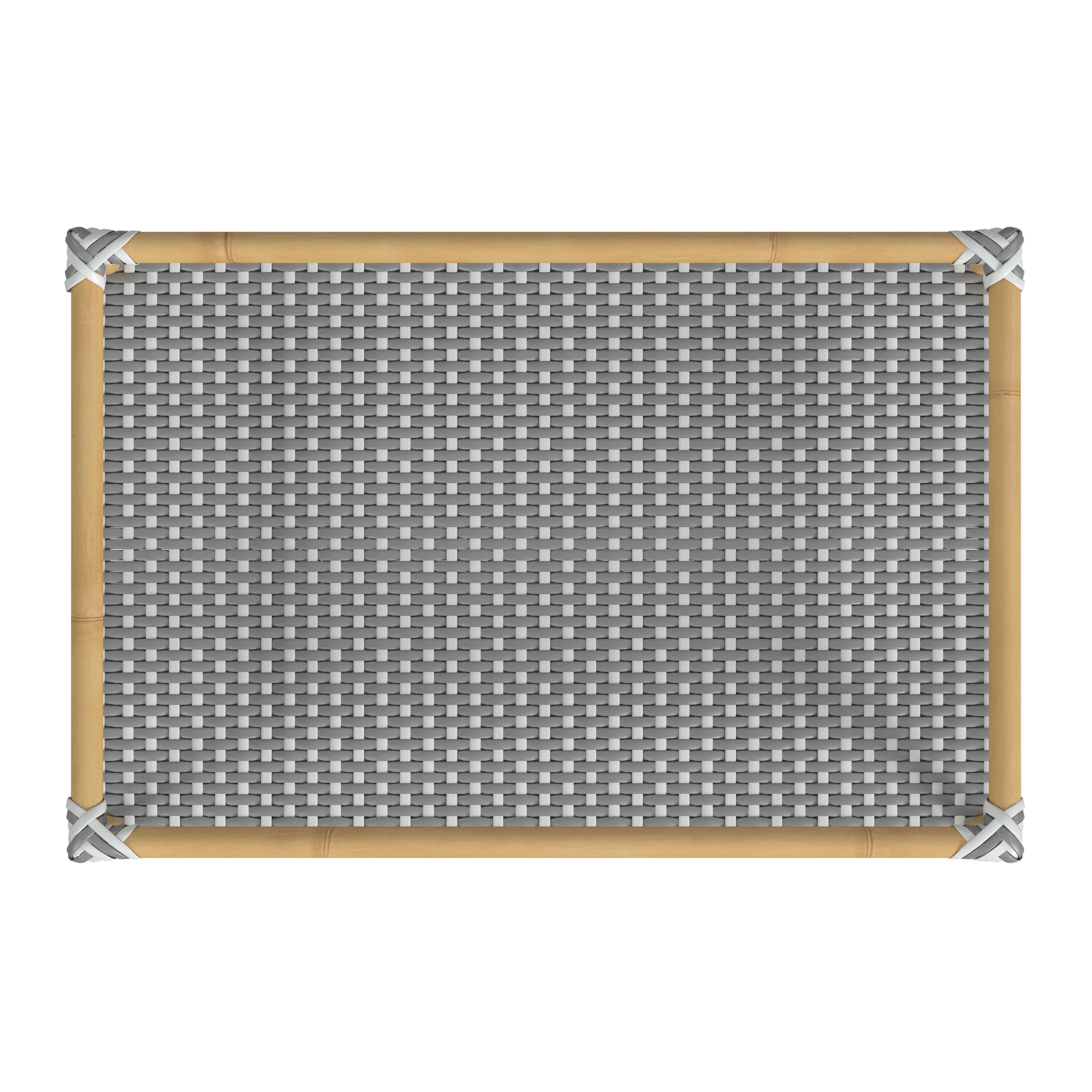 - Product Features (Construction Details): Construction Details: Handwoven PU rattan tray top and aluminum powder-coated frame. Added lacquer finish for protection for a durable, long-lasting product resistant from outdoor elements such as sun, water, mold, and rust.