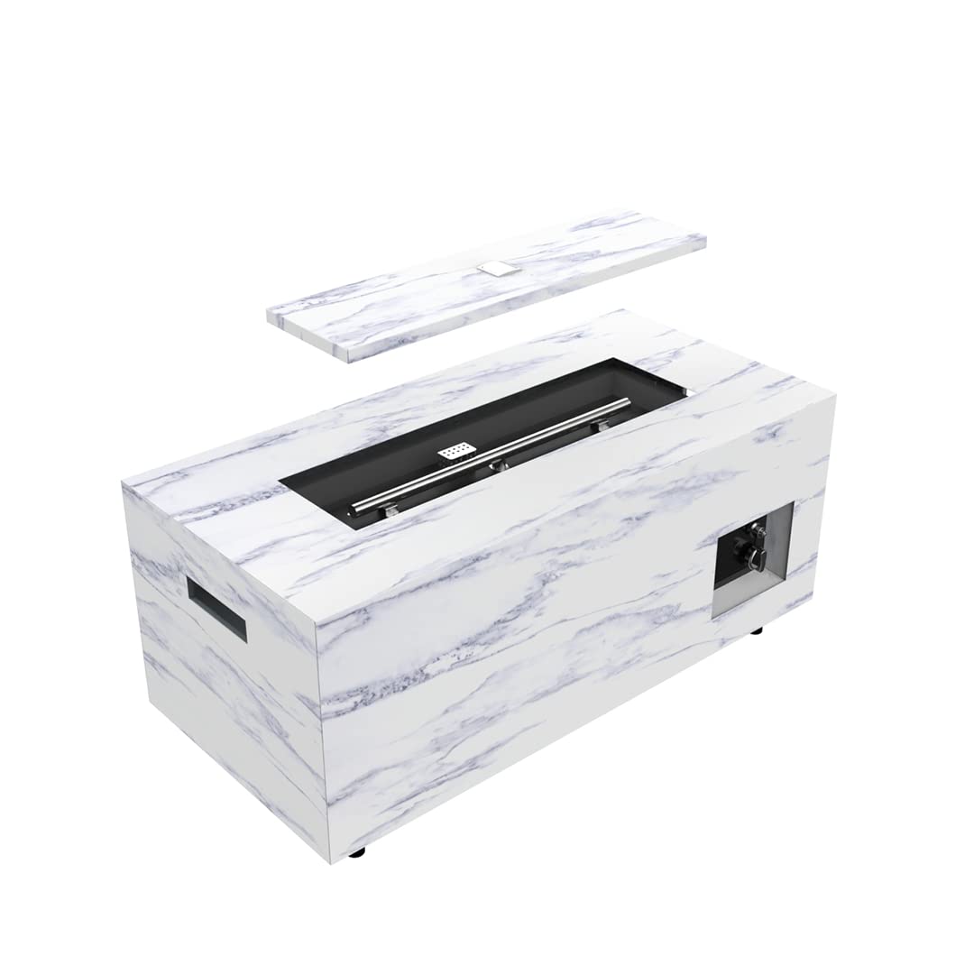 Bring warmth and ambiance to your outdoor living space with this sleek, grey rectangular propane fire pit table. Designed for easy use and elegant outdoor entertaining, it combines durable steel construction, convenient propane storage, and a protective lid and cover for year-round enjoyment. Perfect for patios, decks, and backyard lounges, it elevates gatherings with a steady flame and tasteful lava rock accents.