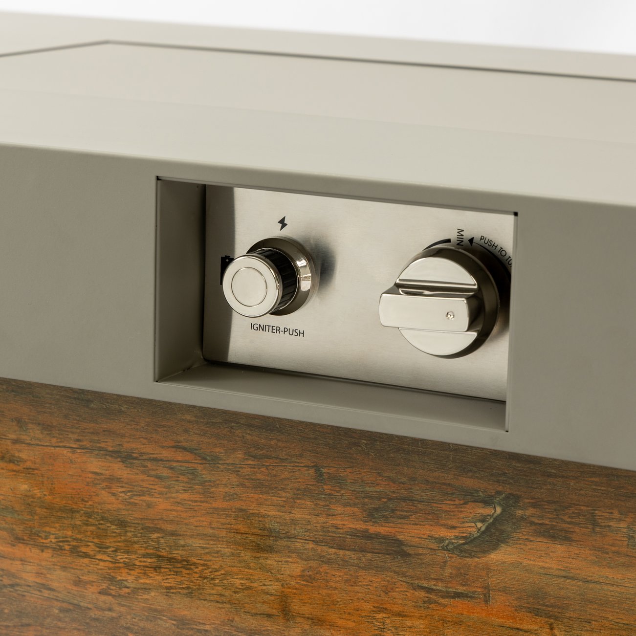 Bring warmth and style to your outdoor space with this contemporary iron fire pit table. Designed for easy use and low maintenance, it pairs a modern wood-grain aesthetic with a reliable propane burner to create a cozy focal point for patios, decks, and backyard gatherings.