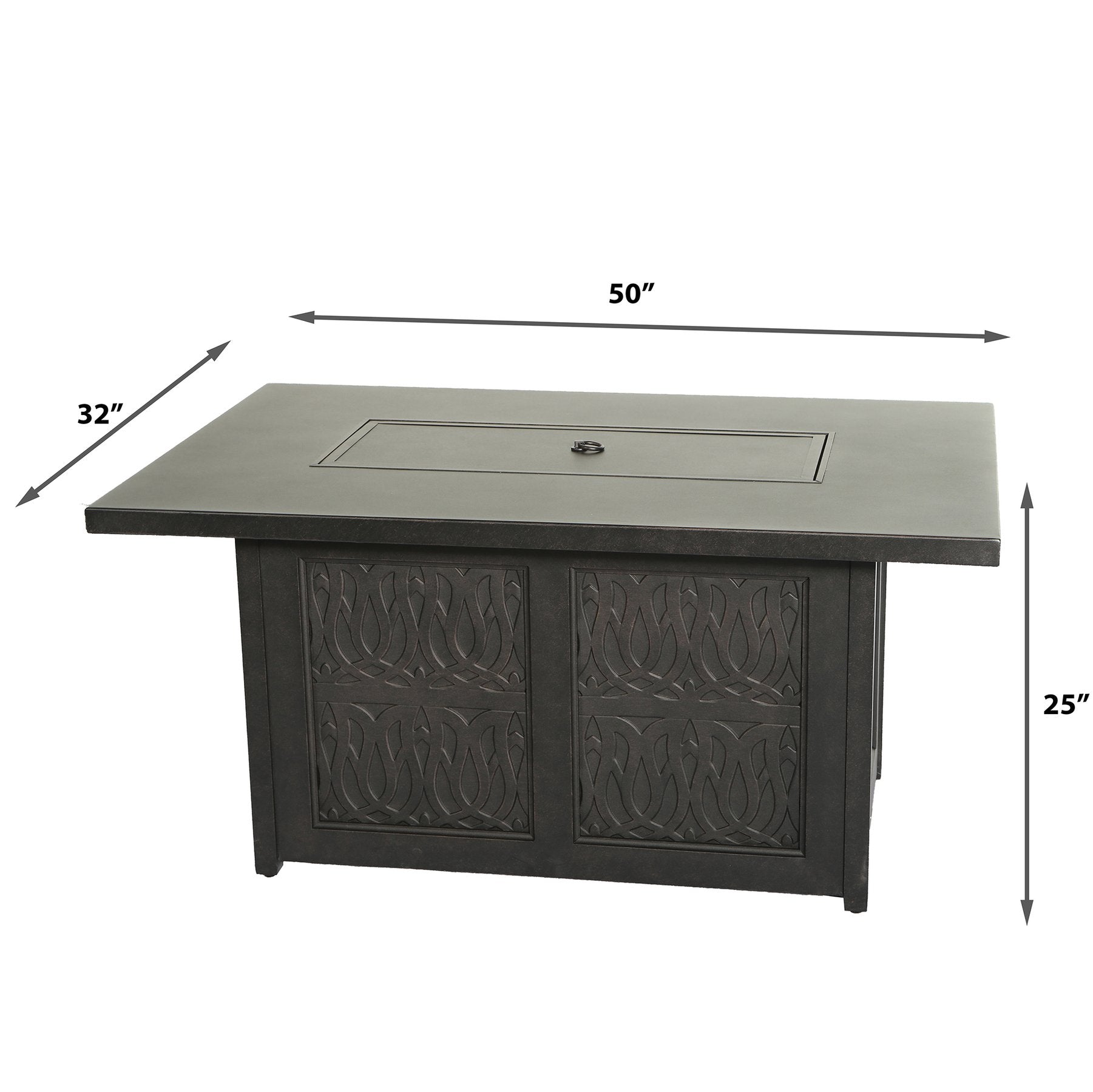 - Experience the ultimate delight of summer evenings in your backyard with this stylish and sophisticated 55,000 BTU Propane Rectangle Firepit Table.