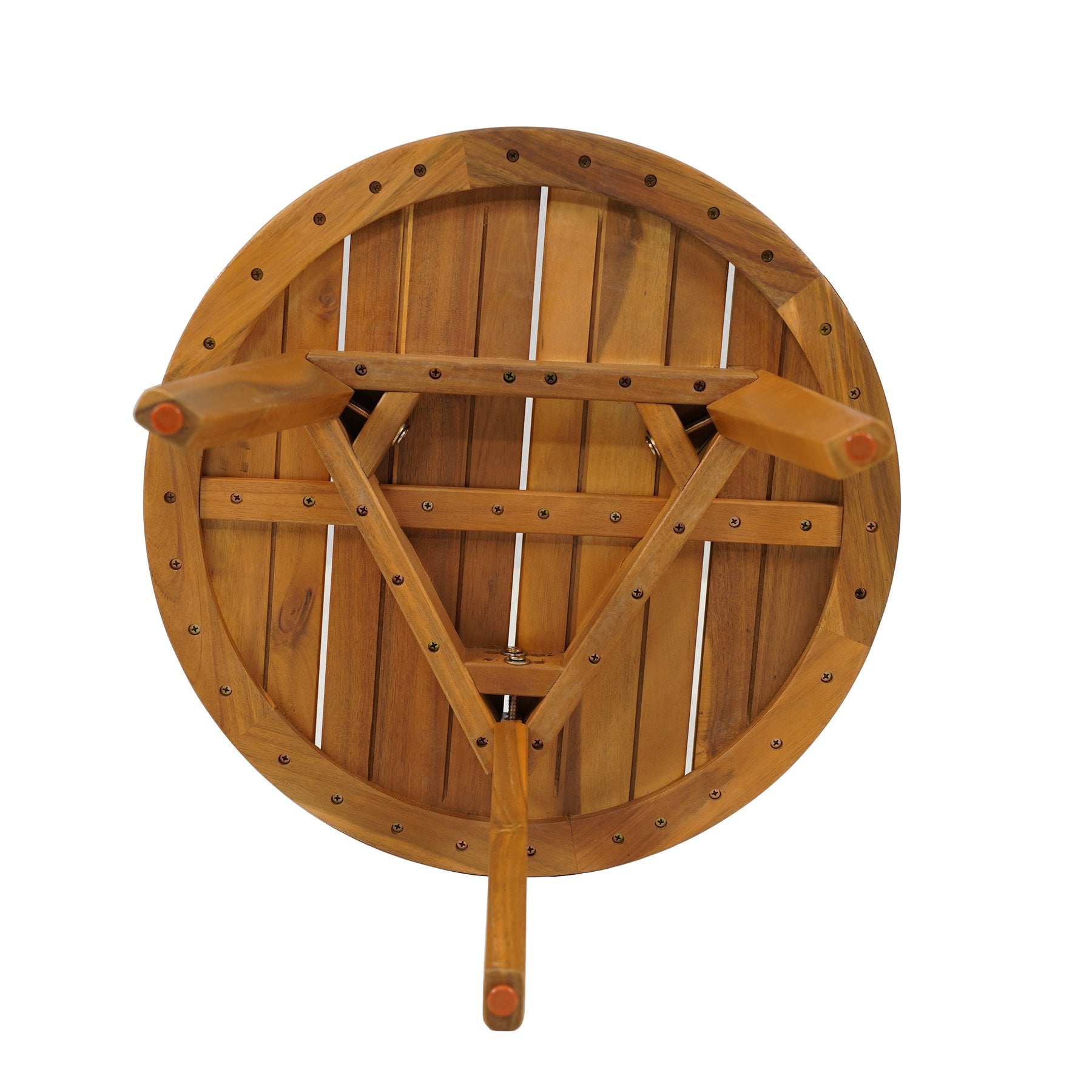 Bring rustic charm and reliable outdoor performance to your patio with this Acacia round side table. Crafted from solid acacia wood and finished in a warm teak tone, it pairs classic slat-top styling with durable construction to serve as a versatile accent for drinks, snacks, plants, or outdoor décor.