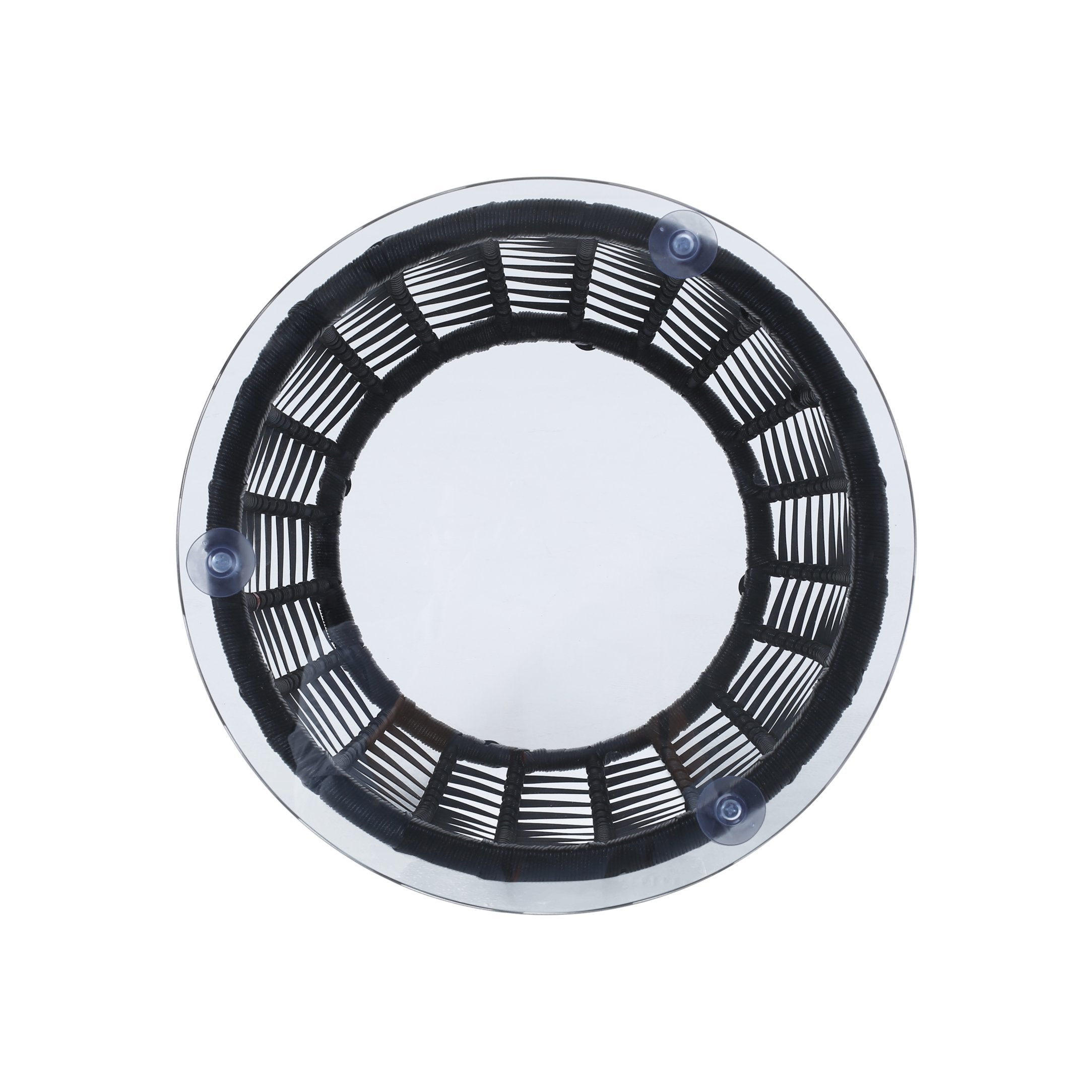 Add a touch of relaxed Boho charm to your indoor or covered outdoor space with this sculptural side table. Handwoven polyethylene rattan wraps a sturdy powder-coated iron frame to create a lightweight yet stable drum silhouette topped with tempered glass — perfect for holding drinks, decor, or a bedside lamp while complementing coastal, modern, or eclectic decors.