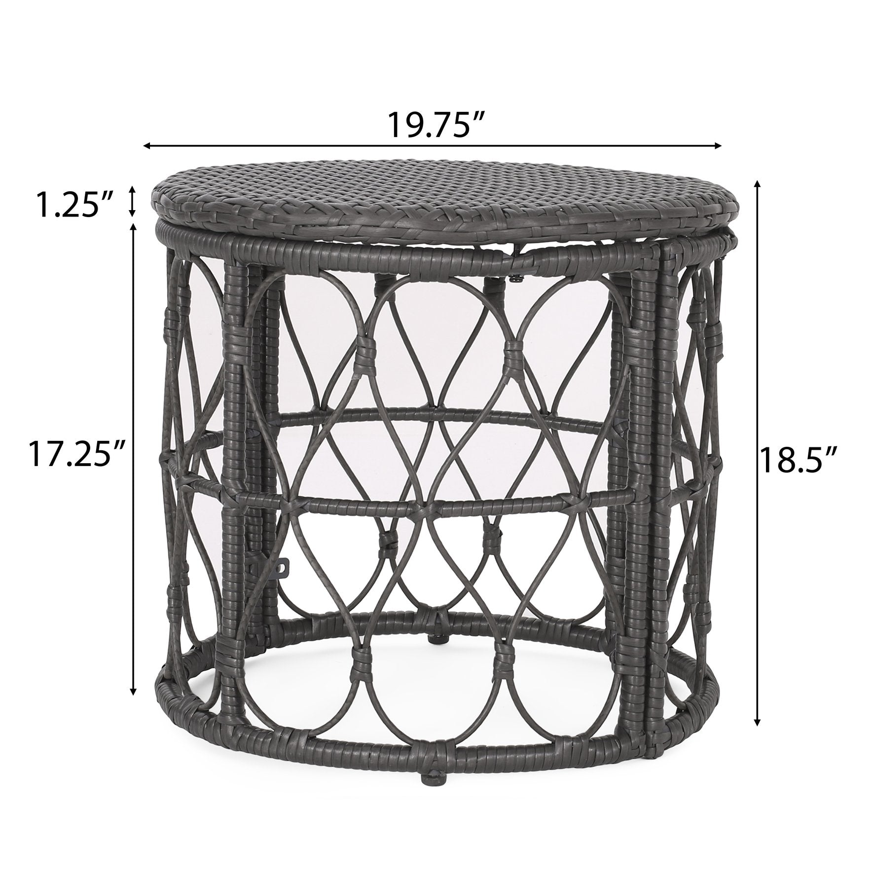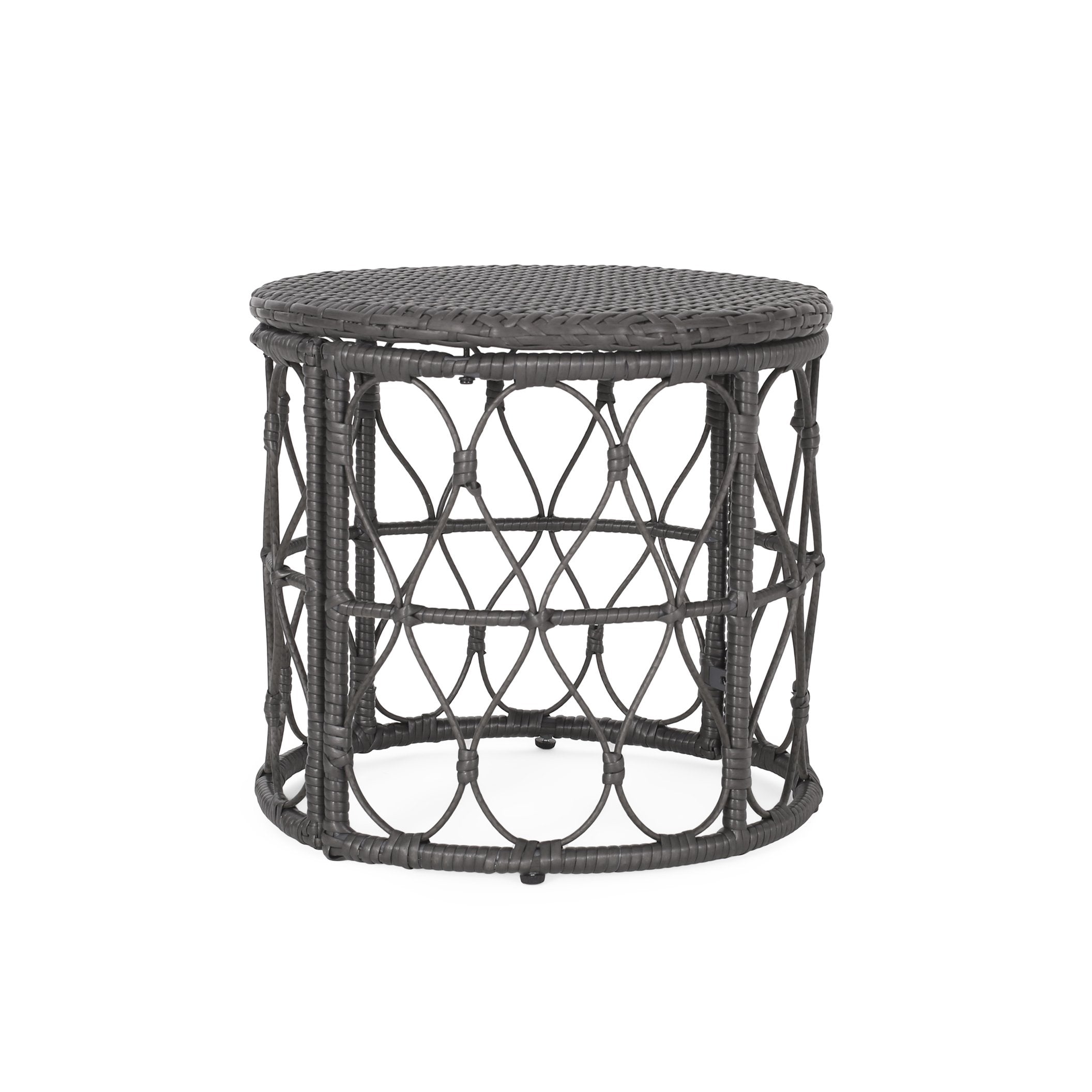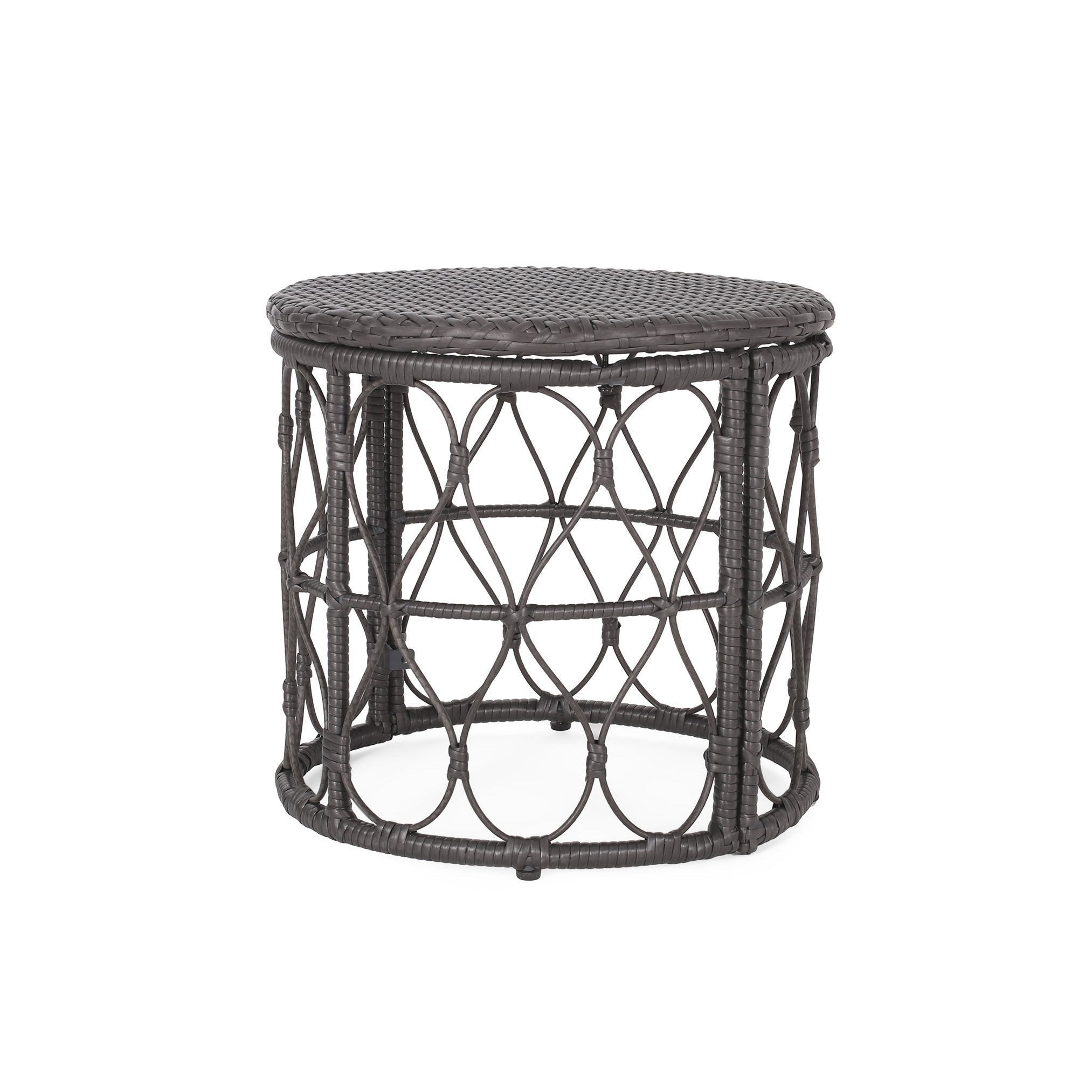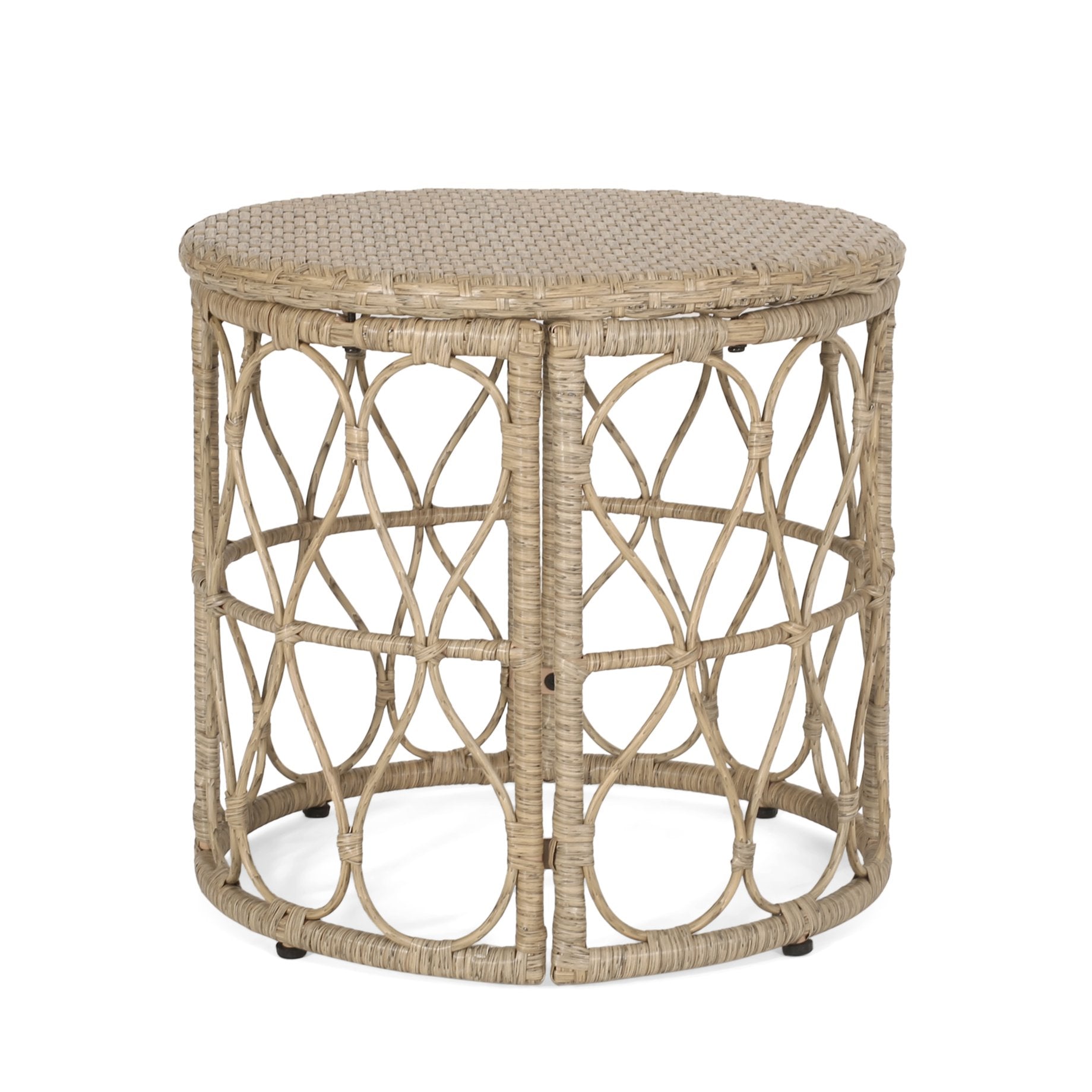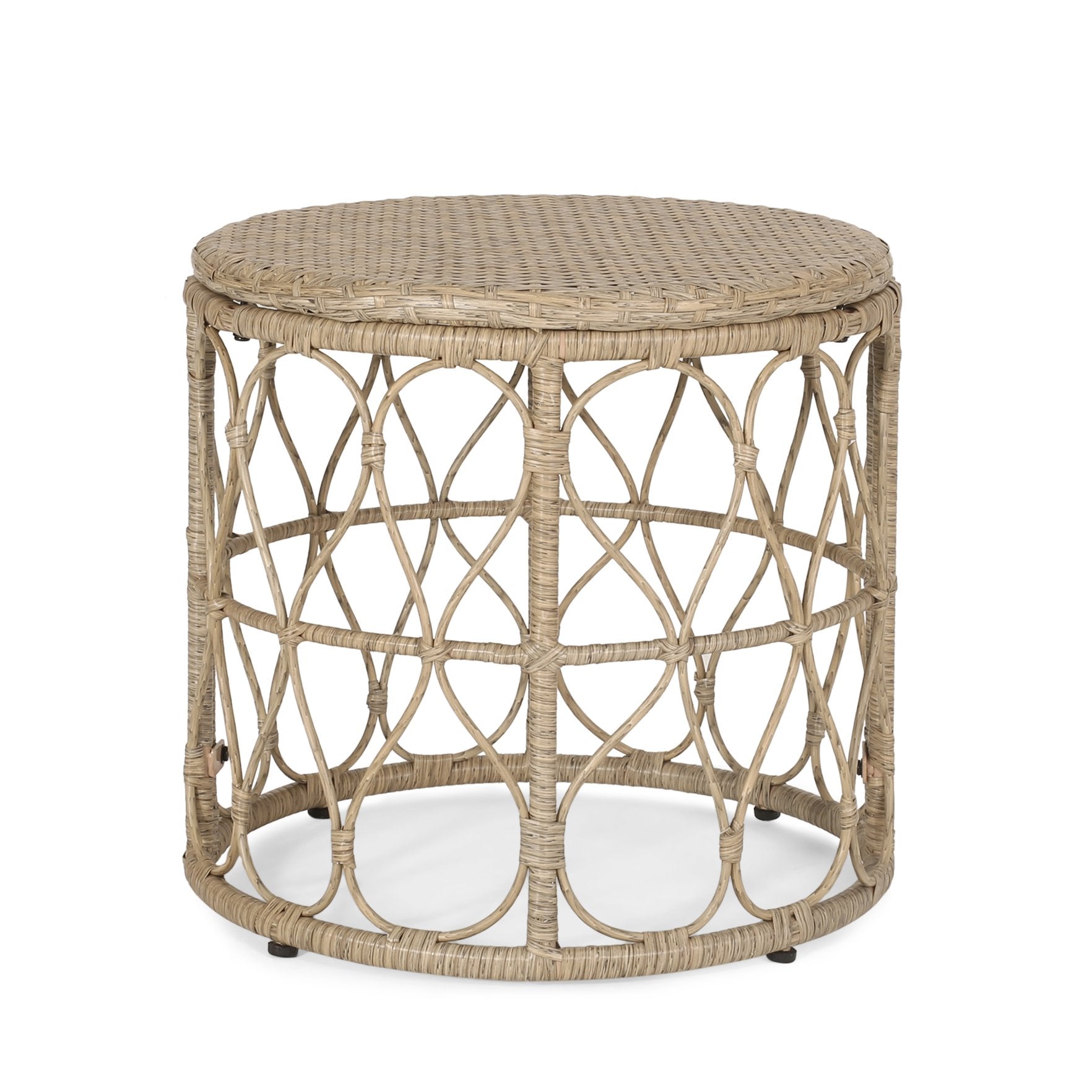 Bring a relaxed, boho-inspired accent to your indoor or outdoor living area with this charming rattan side table. Its woven polyethylene rattan construction and looped wicker-top design deliver textured visual interest and durable performance—perfect as a patio companion, living room end table, or bedside accent that complements a variety of decor styles.