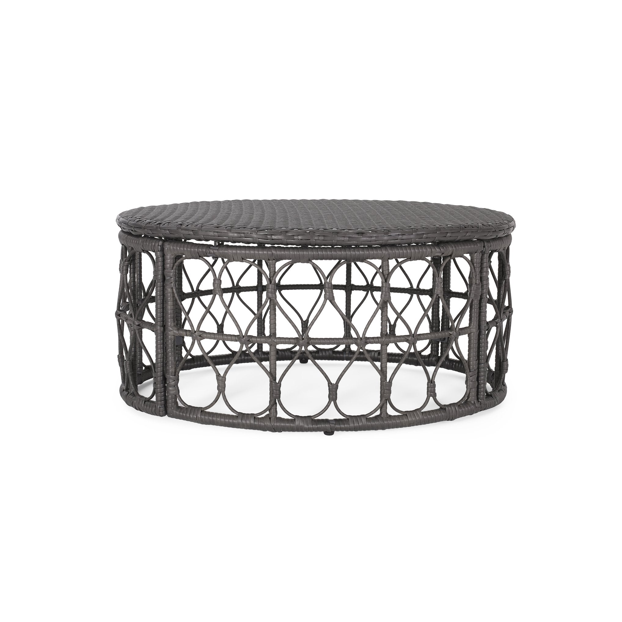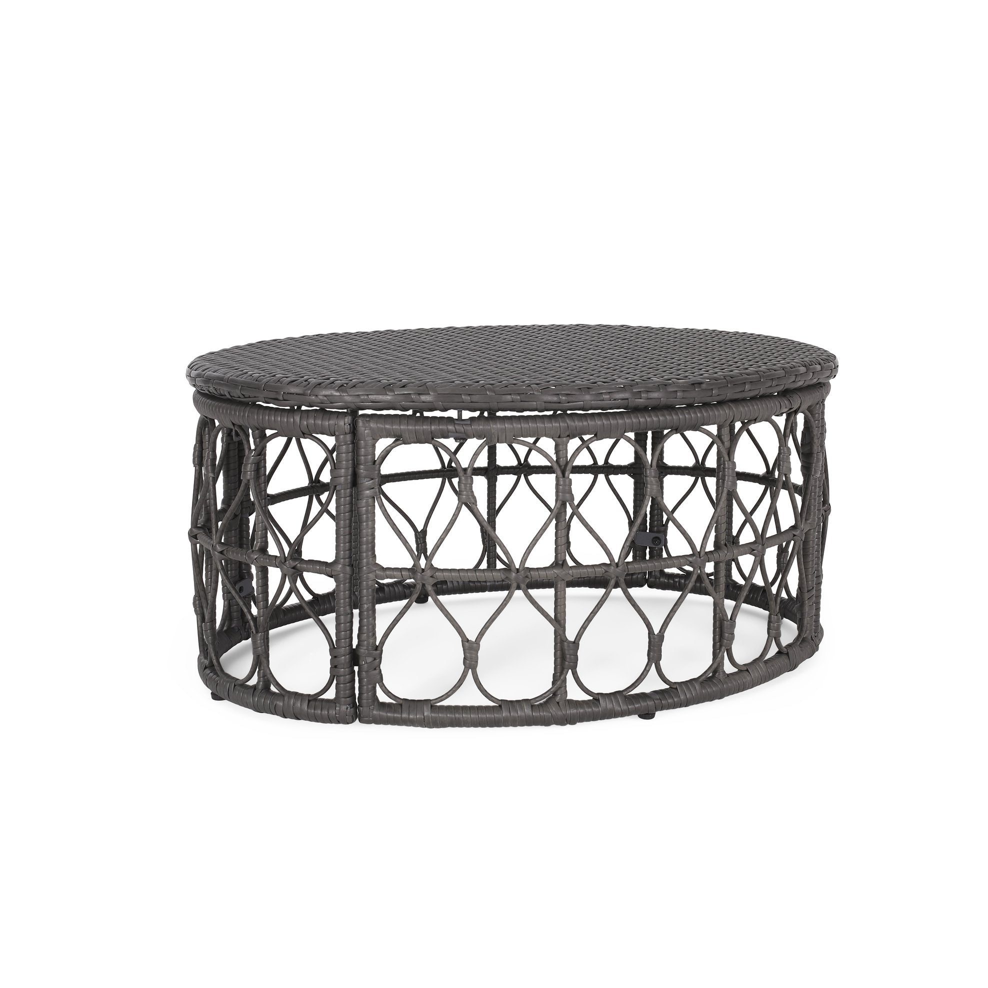 Bring relaxed, boho-inspired style to your patio or sunroom with this handwoven rattan coffee table. Its woven wicker top and looped detailing add texture and charm while the durable polyethylene rattan construction stands up to everyday outdoor use. Perfect as a centerpiece for casual gatherings or quiet mornings with coffee, this table balances effortless style with practical performance.
