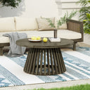 Bring timeless natural warmth to your outdoor living area with this round acacia wood coffee table. Its sculptural slatted base and smooth tabletop combine rustic charm with modern lines, creating a durable focal point for patios, balconies, and gardens. Built from solid acacia, it resists outdoor wear while offering a lightweight, welcoming profile that complements a range of seating and decor styles.