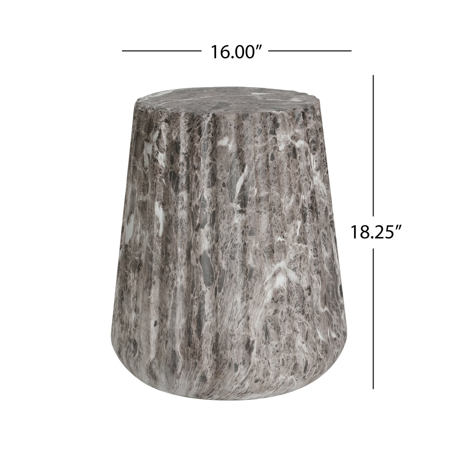 Bring refined sculptural charm to your indoor or outdoor living spaces with this carved pedestal side table. Crafted in a Travertine-inspired finish, its half-sphere tabletop and solid cylindrical base deliver a modern, architectural silhouette that works as a functional surface, occasional seat, or decorative accent. Durable lightweight concrete construction ensures a smooth, stone-like appearance with lasting performance—no assembly required.