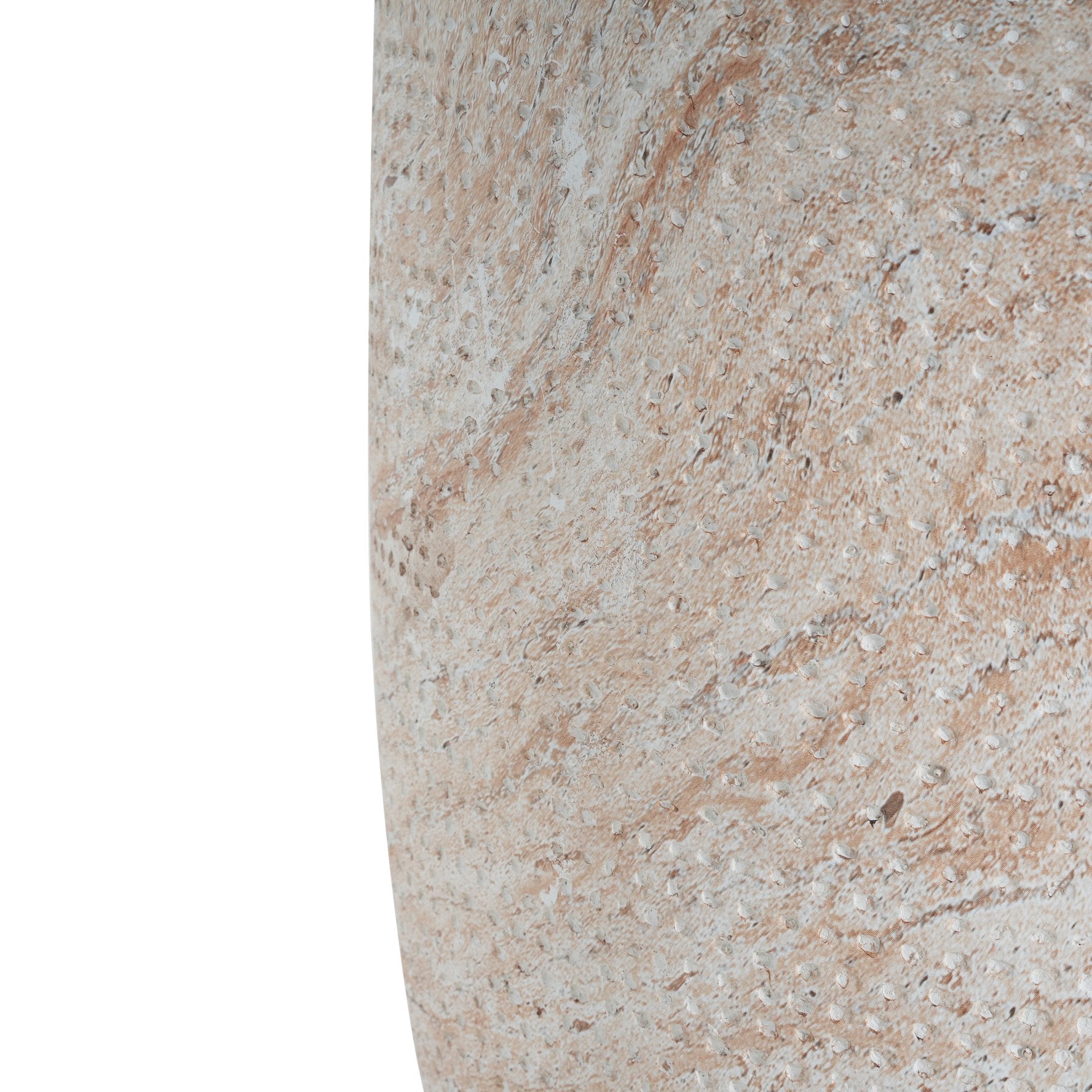 Bring a touch of modern organic charm to any indoor or outdoor setting with this lightweight concrete side table finished in travertine. Its rounded, tapered cylindrical silhouette and textured beige surface create a refined yet earthy accent that works as a side table, extra seat, or sculptural statement piece. Built from lightweight MGO/concrete for strength without excessive weight, it’s ready to place wherever you need a versatile, low-maintenance surface.