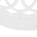 - Iron Cut Design: Refined with an elegant iron cut design, the frame of this table brings an elegant touch to the overall piece, making it an understated yet chic addition to your home. This features a beautiful overlapping circle pattern.