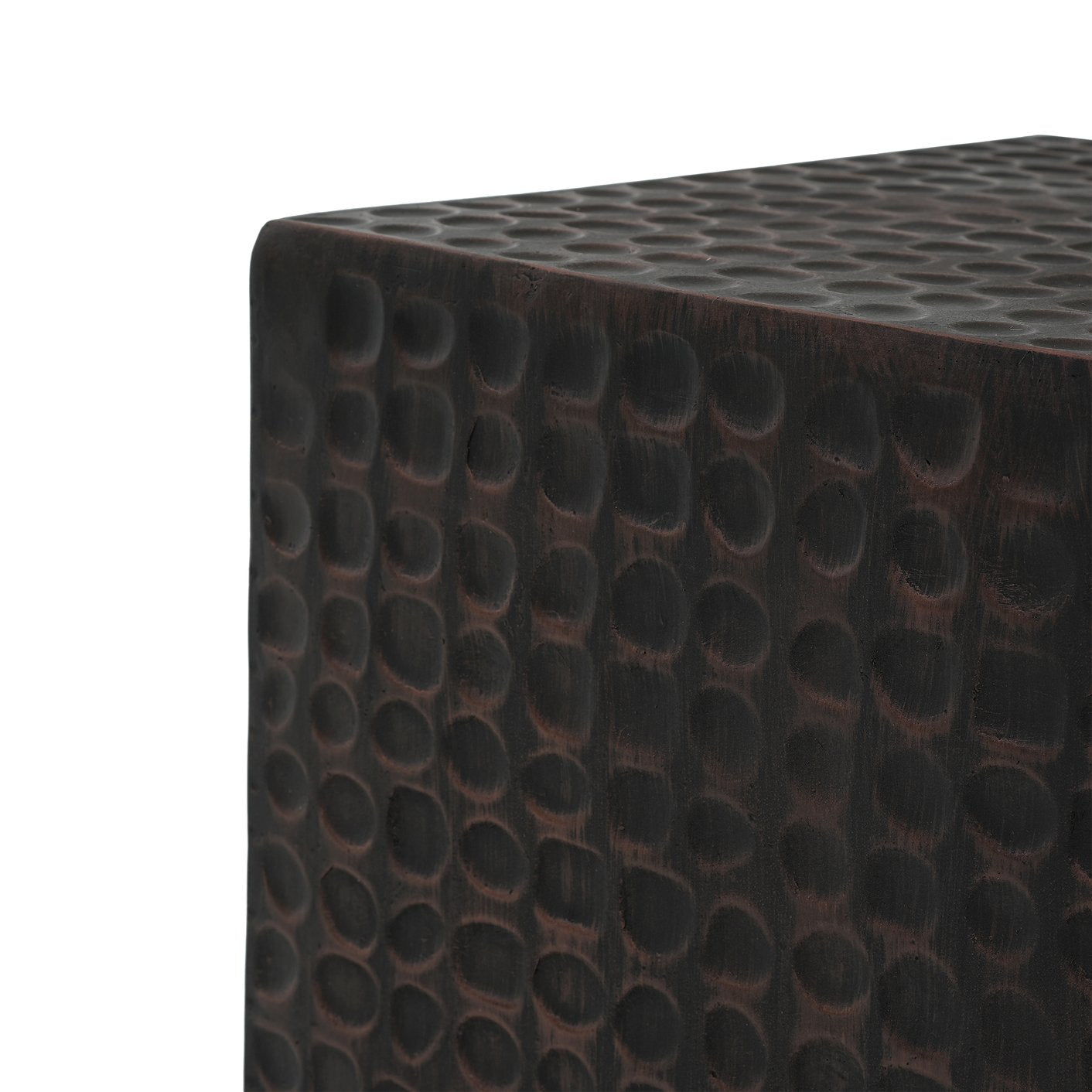 - Modern Cube Design: Featuring a sleek, geometric shape with fluted surfaces, this lightweight concrete side table adds a touch of sophistication to your décor. Finished in a distinctive Antique Copper hue, it introduces warm, elegant accents that pair beautifully with industrial, minimalist, and modern aesthetics.