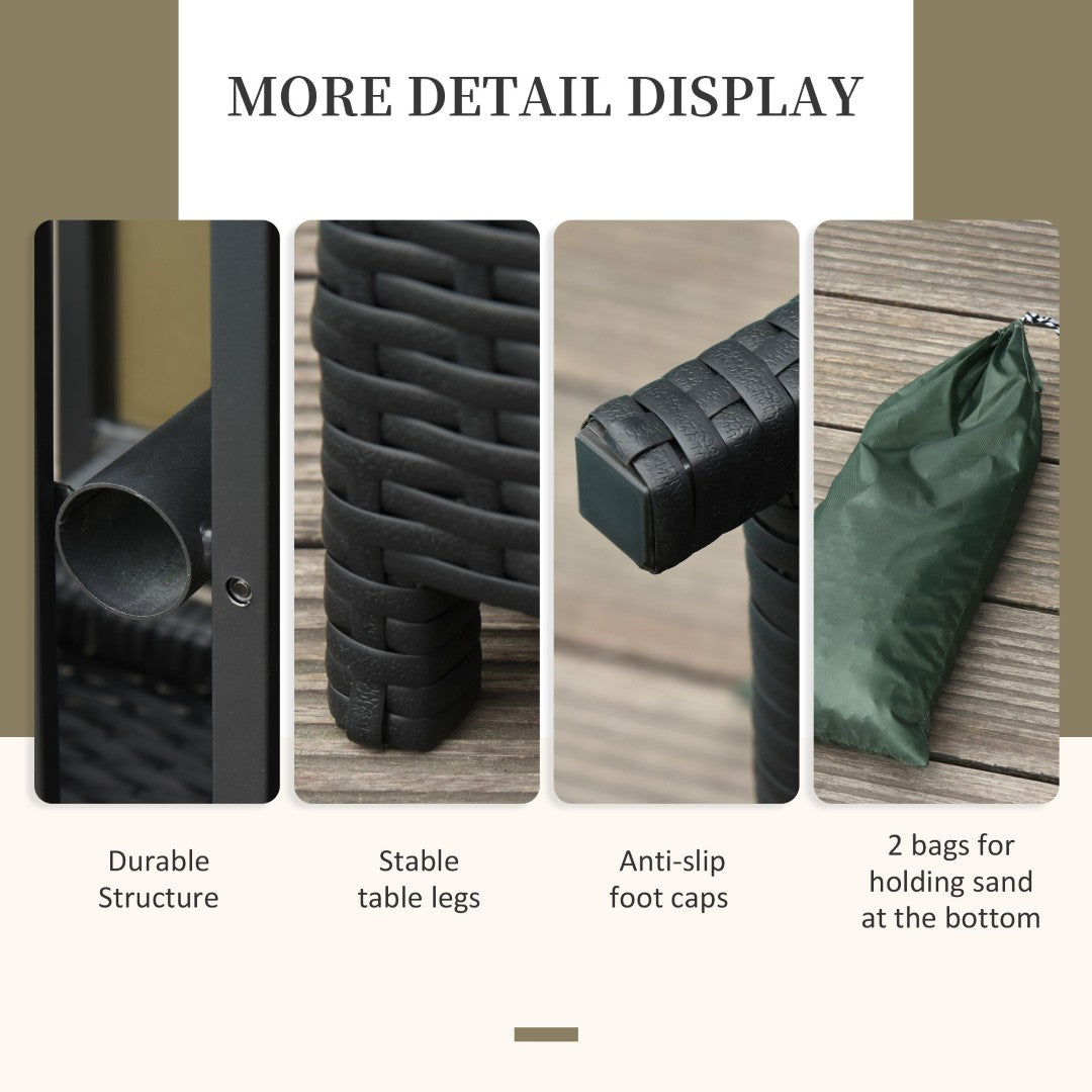 Add a stylish and practical touch to your outdoor living space with this compact rattan wicker side table. Designed for durability and easy maintenance, it pairs modern steel framing with weather-resistant PE wicker and a faux-wood PS tabletop. Ideal for patios, poolside lounges, balconies, or garden seating areas, the table also accepts a sunshade umbrella and includes ballast bags for enhanced stability.