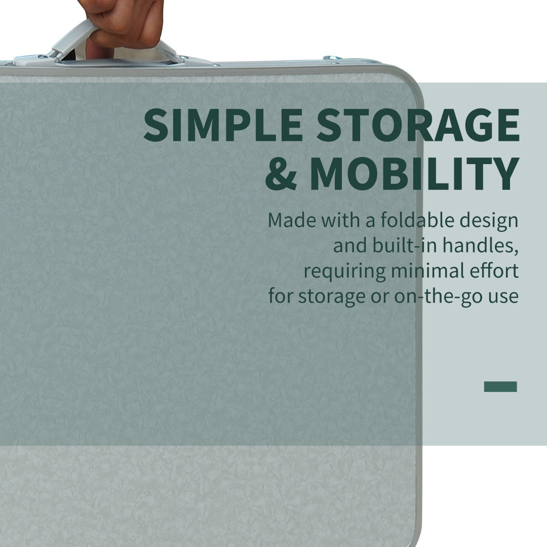 - Lightweight yet strong: Sturdy aluminum alloy frame paired with a medium-density fiberboard tabletop for a balance of durability, stability and portability