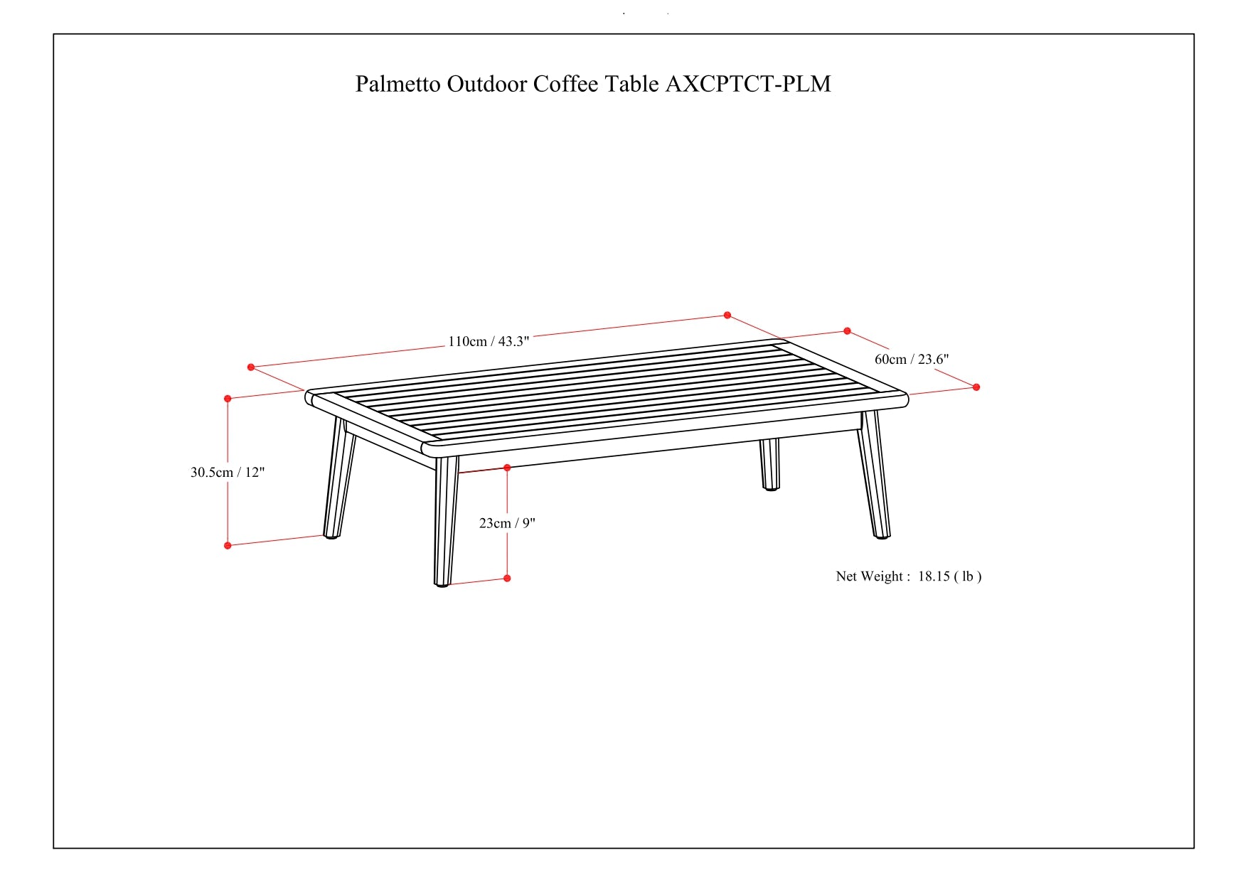 Bring timeless warmth and durable craftsmanship to your outdoor living area with this Palmetto coffee table in a light teak finish. Handcrafted from solid acacia wood and finished to highlight its natural grain, this table combines sturdy construction with contemporary styling to create a versatile centerpiece for patios, decks, and poolside lounges.
