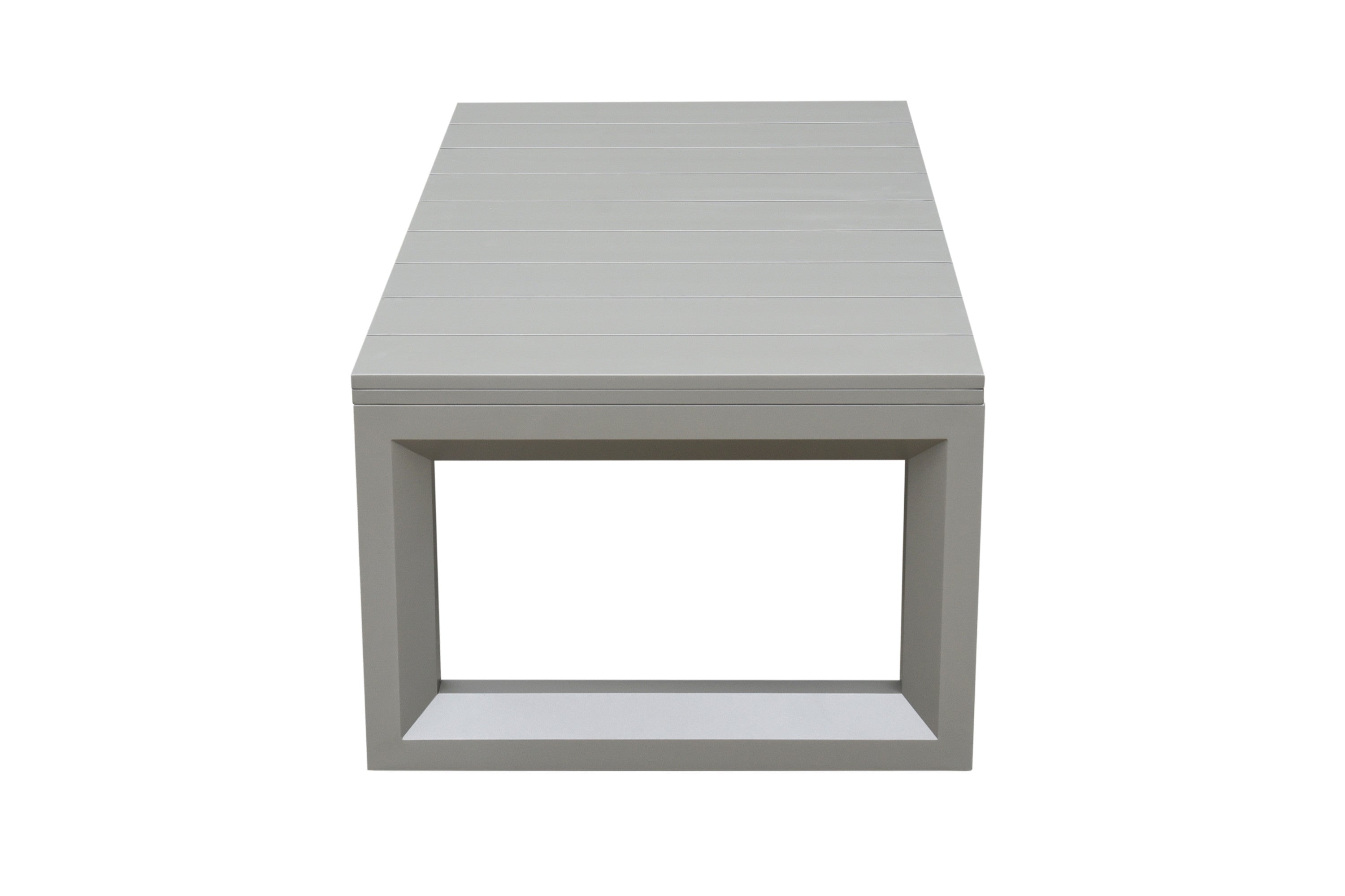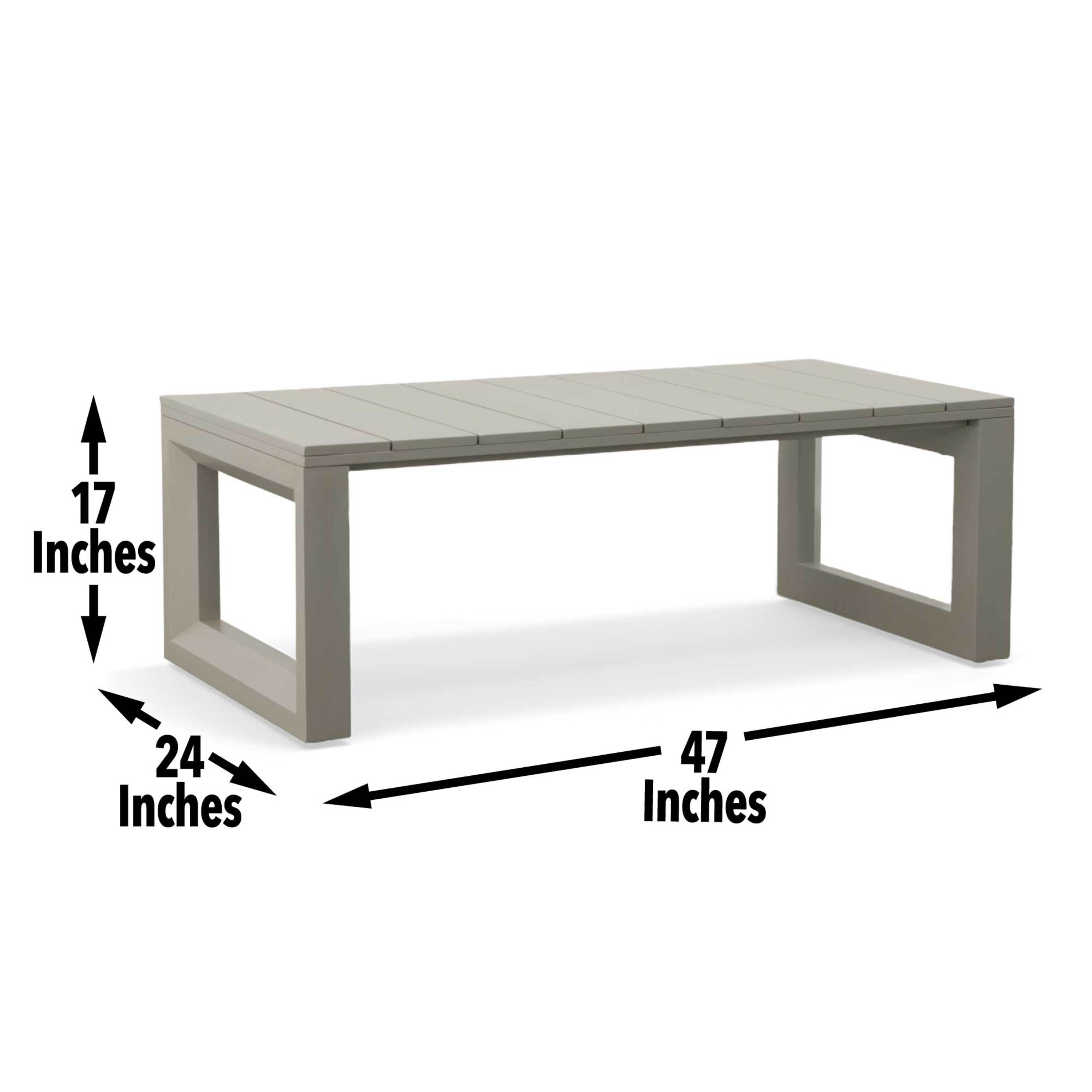 Elevate your outdoor living space with this contemporary cocktail table designed for style and durability. Its neutral tan finish, beveled end panels, and subtle geometric pattern create a refined focal point for patios, decks, or poolside lounges, while rust- and weather-resistant aluminum construction ensures long-lasting performance with minimal maintenance.