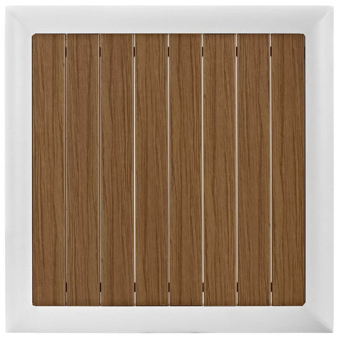 - Contemporary Outdoor Side Table Powder-Coated Aluminum Frame Slatted Synthetic Wood Tabletop Water and UV Resistant Comes Fully Assembled