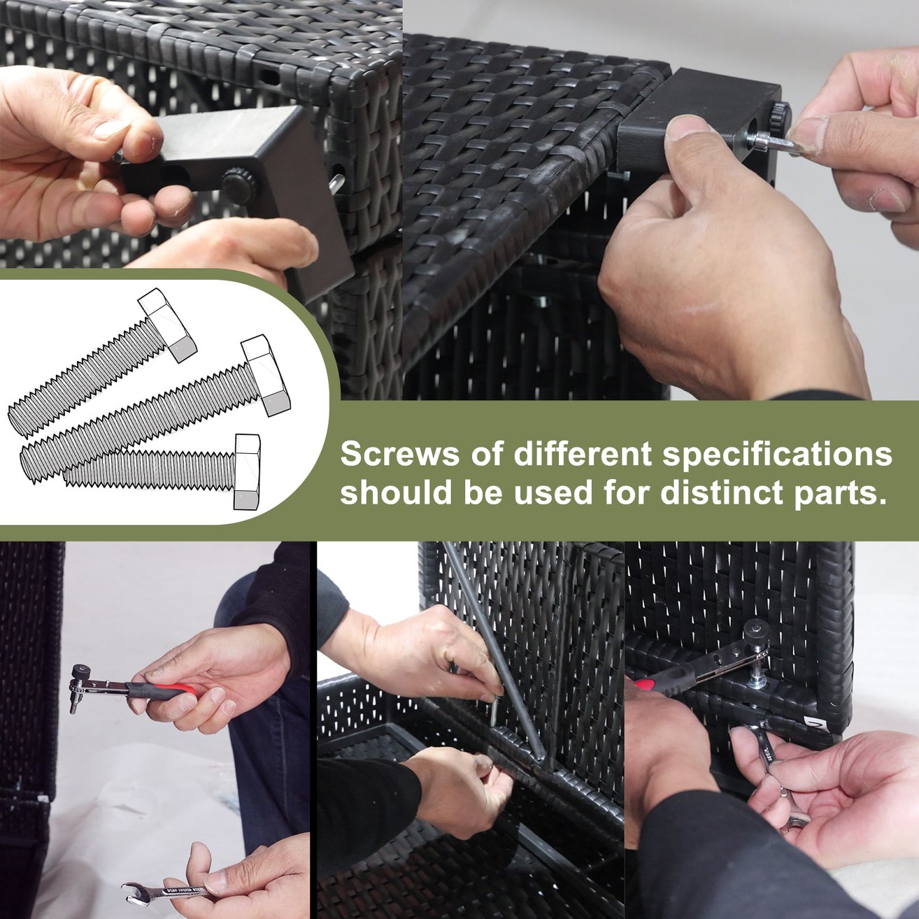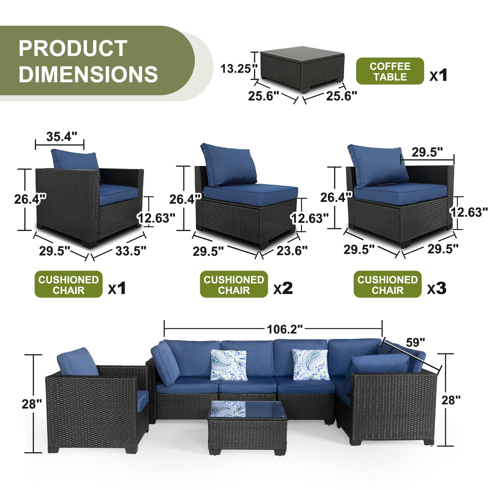 - Durable Construction: Our patio sectional set is made of durable PE rattan wicker and high quality steel frame. Strong steel frame supports outdoor sofa stability and balance. The cushion covers are made from 250g polyester cloth. The sofa fasteners clips are included, which can prevent the outdoor seating from moving. The removable cushion covers come with zippers and are machine washable.
