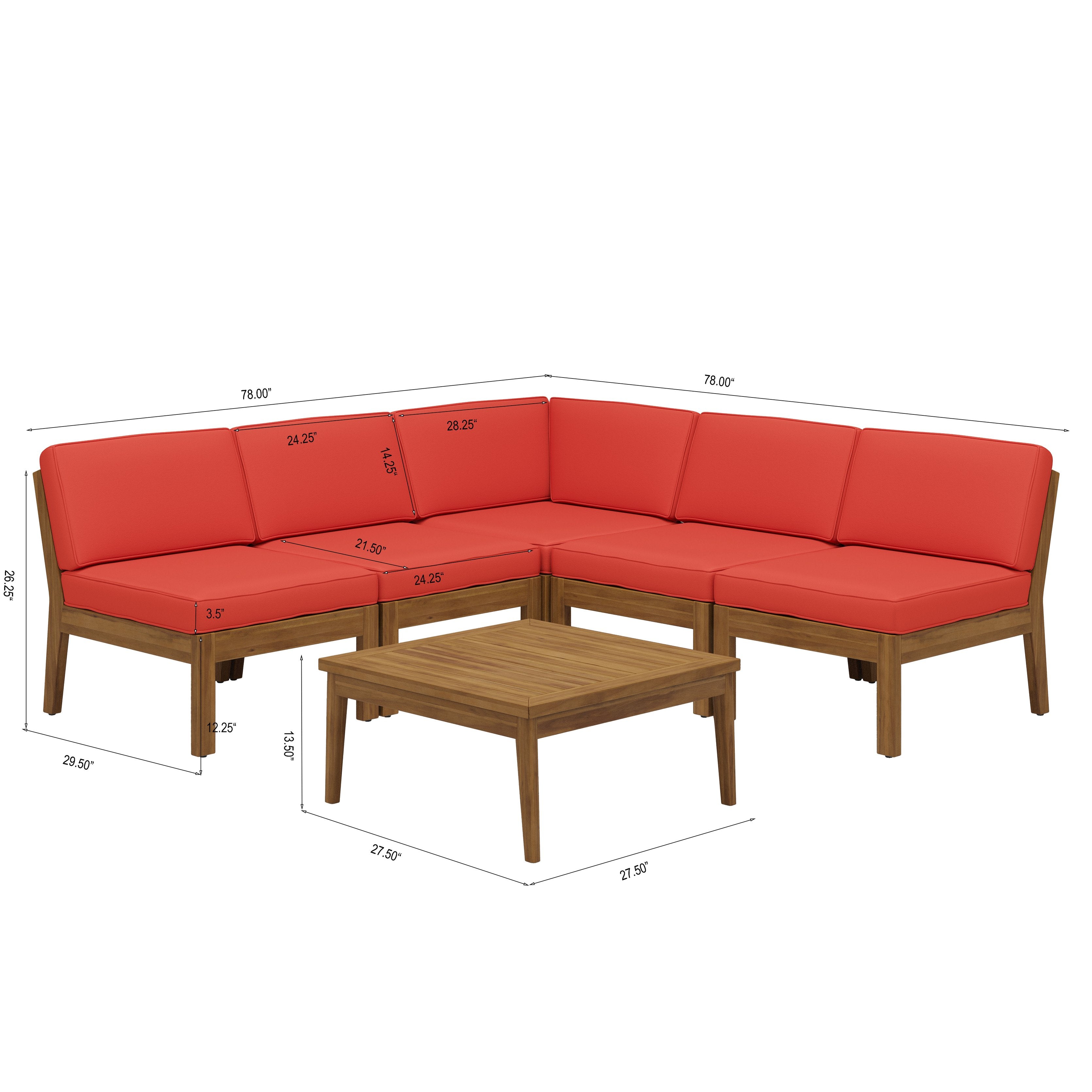 Elevate your outdoor living area with this handcrafted 5-seat sectional set, designed for both comfort and lasting style. Built from durable acacia wood with water-resistant cushions and a thoughtful slat design, this collection blends rustic charm with practical features for easy maintenance and everyday use.