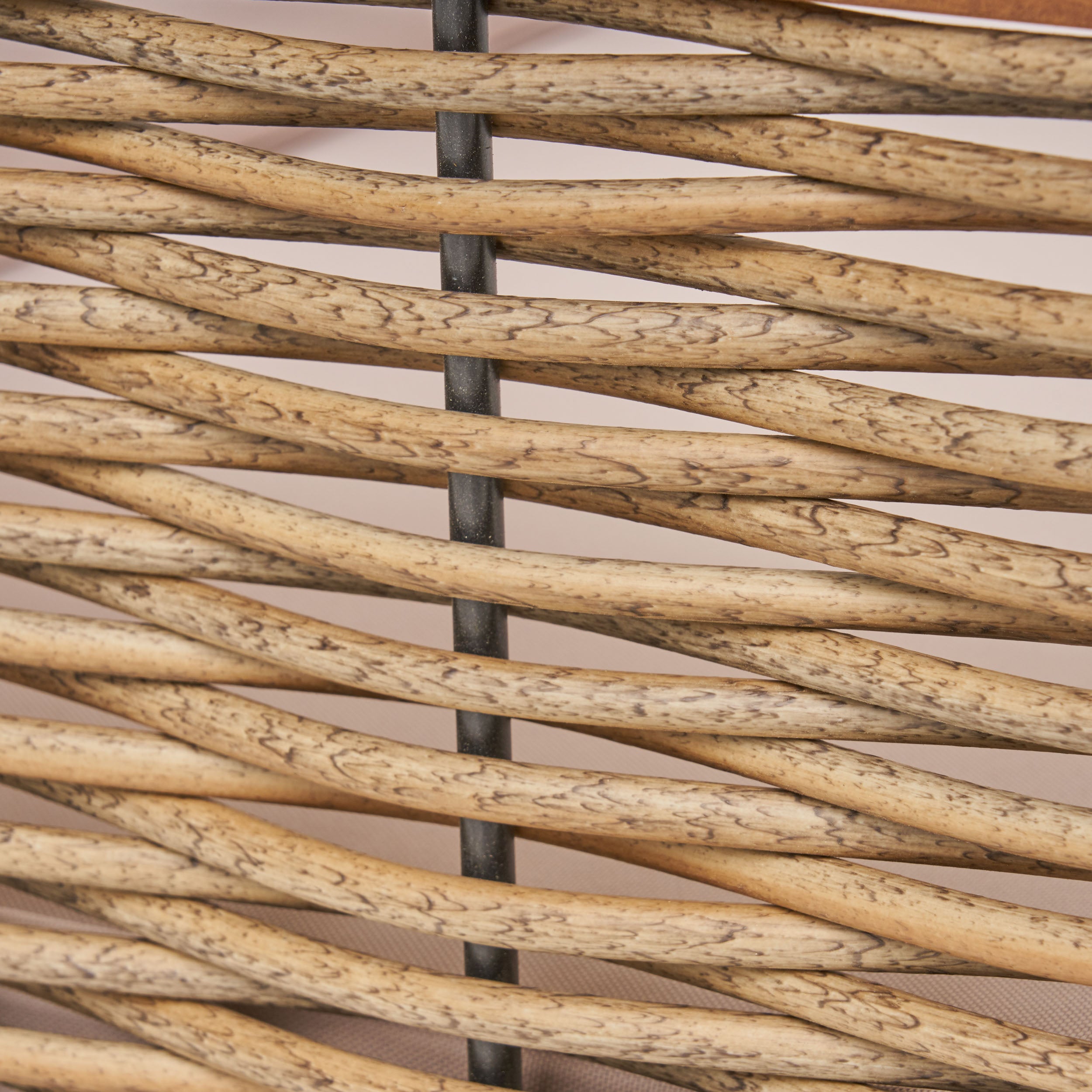 - Materials: Solid acacia wood frame with mixed brown PE rattan (round wicker) accents