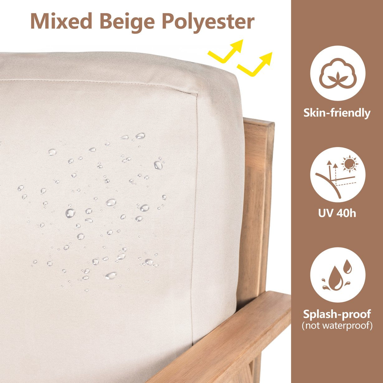 - Comfort & Design: Wide, deep seats and structured backrests provide an inviting lounge experience. Zippered cushion covers make cleaning and replacement simple. Clean lines and neutral teak + beige palette suit a variety of outdoor decors.
